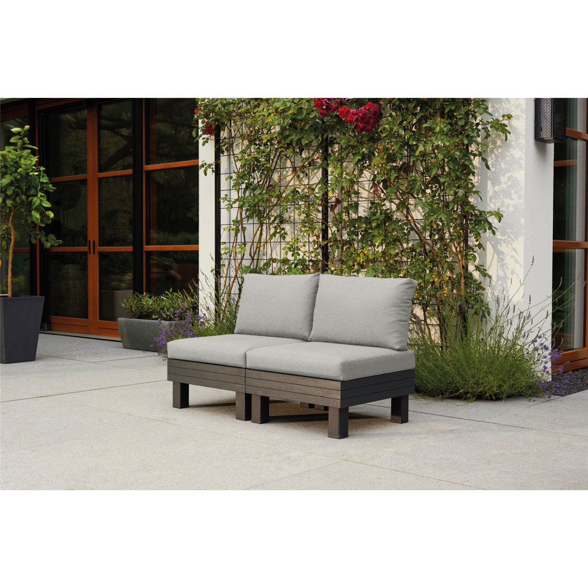 Canapea de exterior, Keter, Elements 2 locuri grafit cu perne gri deschis