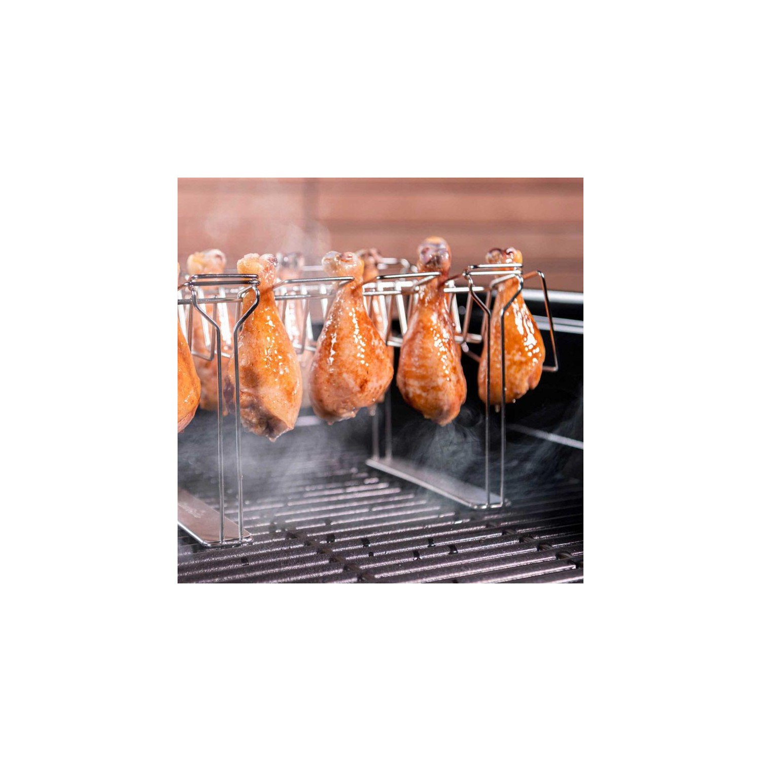 Cu ajutorul acestui accesoriu veti avea rezultate perfecte de fiecare data cand preparati carne, pui sau peste. Datorita picioarelor detasabile, suportul poate fi utilizat in mai multe moduri si poate fi depozitat intr-un spatiu mult mai mic.