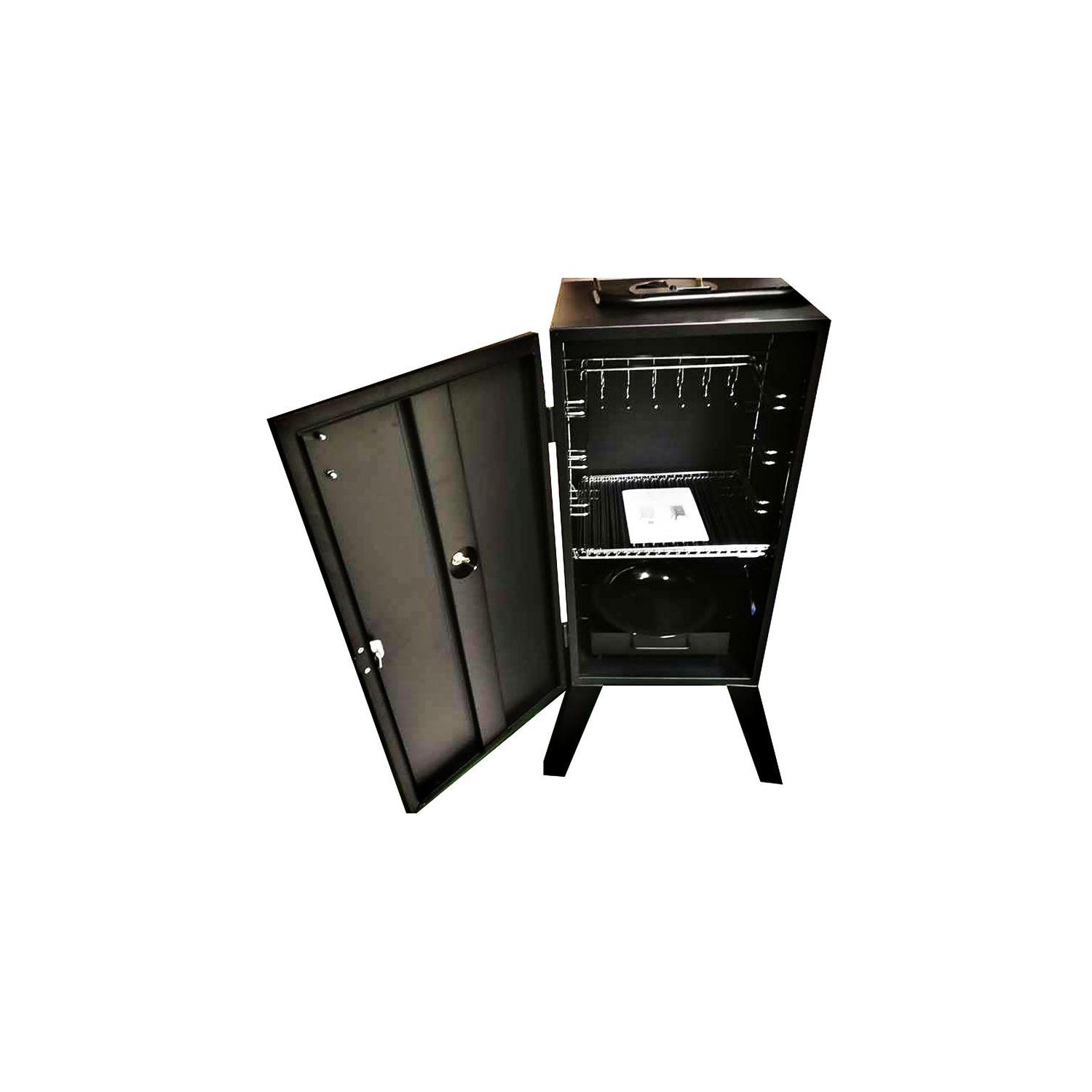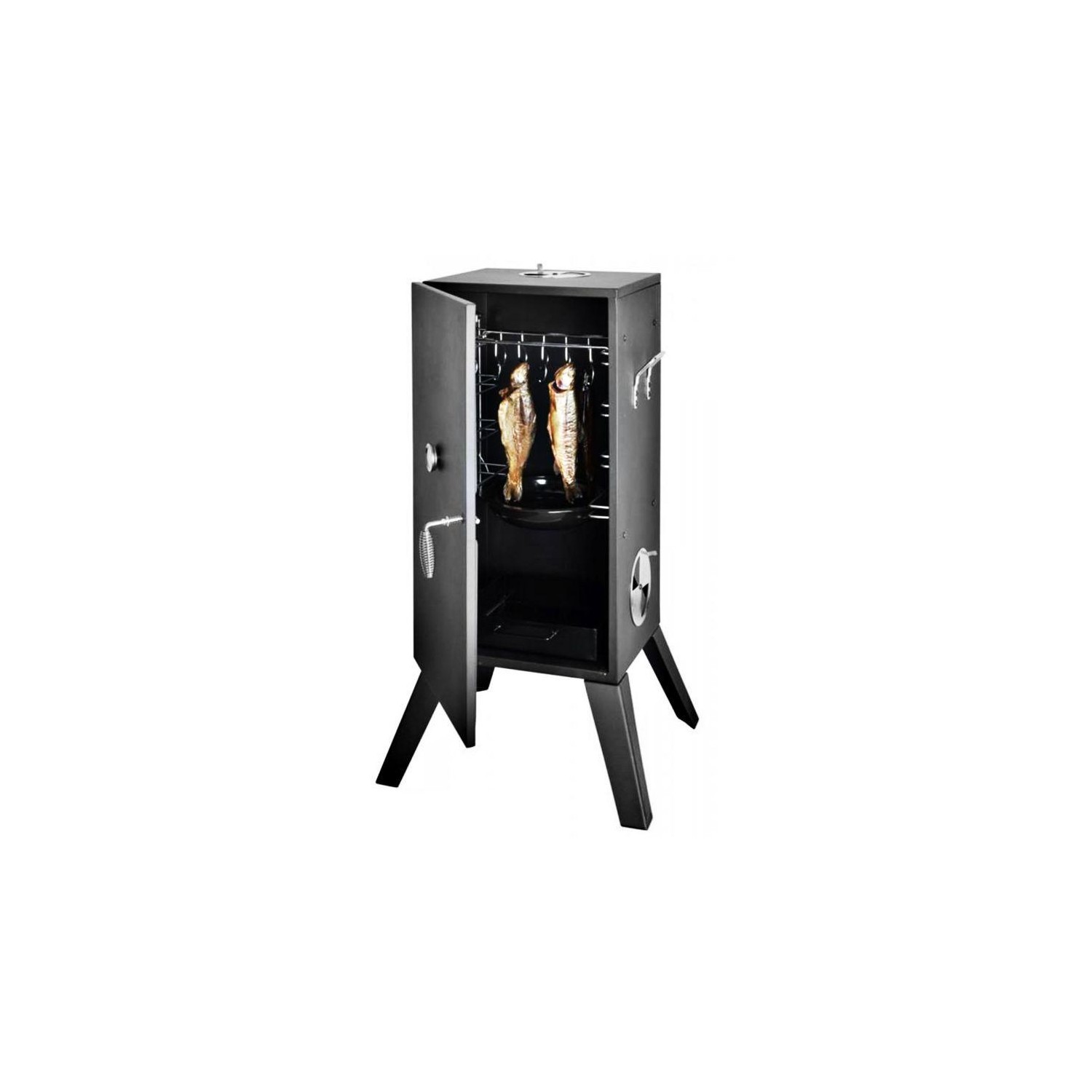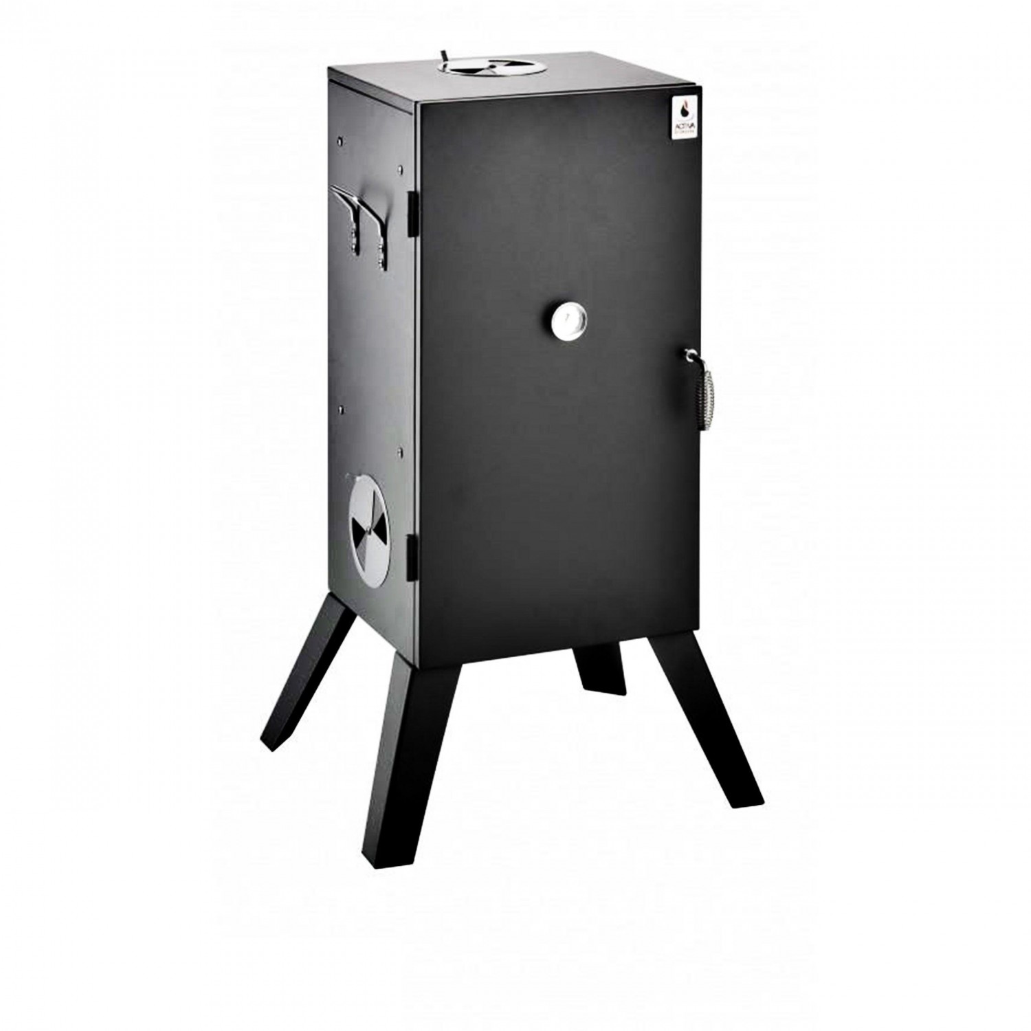 Afumatoarea este echipata cu un compartiment separat pentru arderea lemnului. Dimensiunile de 40,5 x 76 x 36 cm reprezinta un spatiu suficient de lucru. Termometrul integrat in usa de acces ofera posibilitatea de controlare cu usurinta a temperaturii in timpul procesului de afumare. Cu ajutorul discurilor de ventilatie dispuse pe panourile laterale si pe capac, puteti ajusta si regla caldura afumatoarei dupa preferinte.