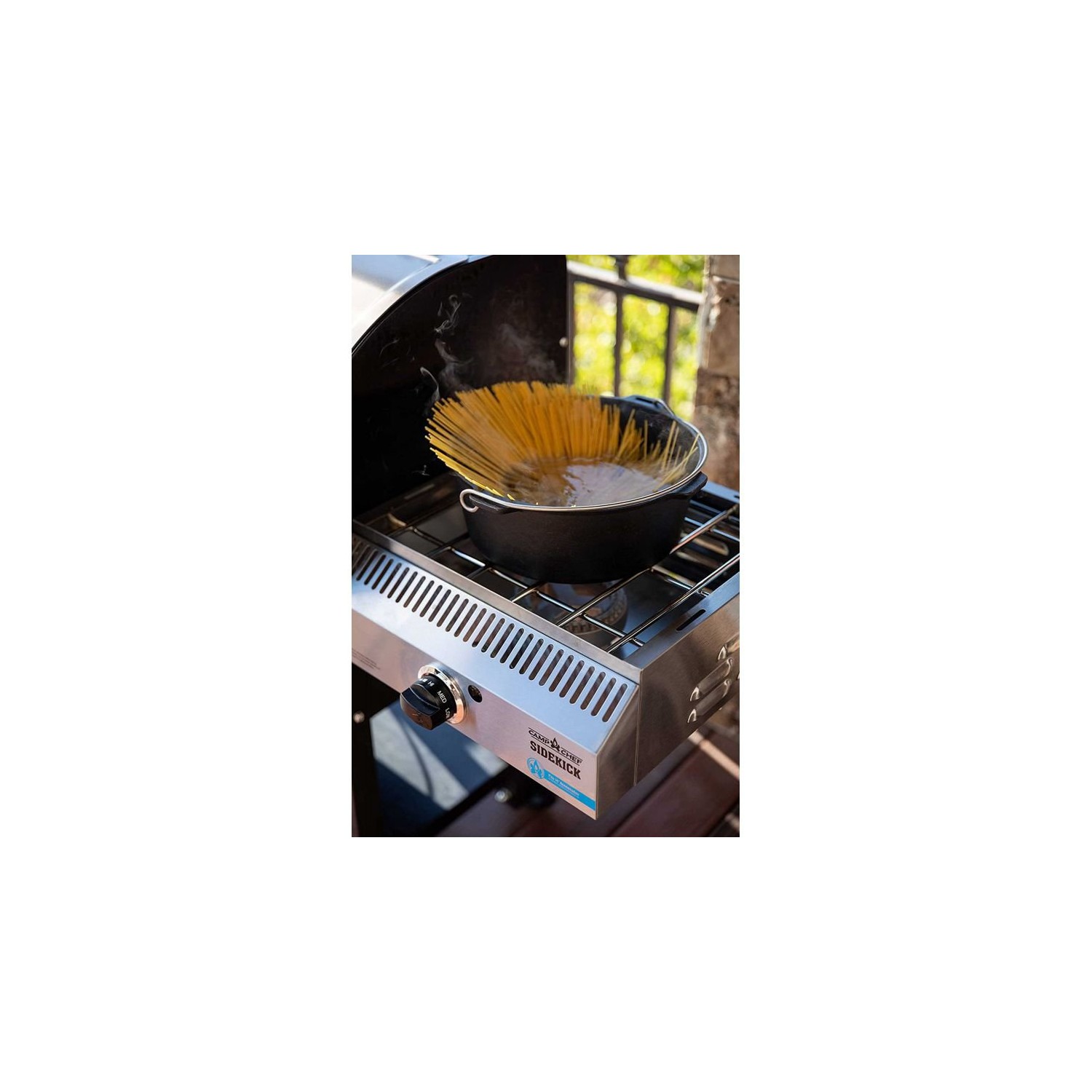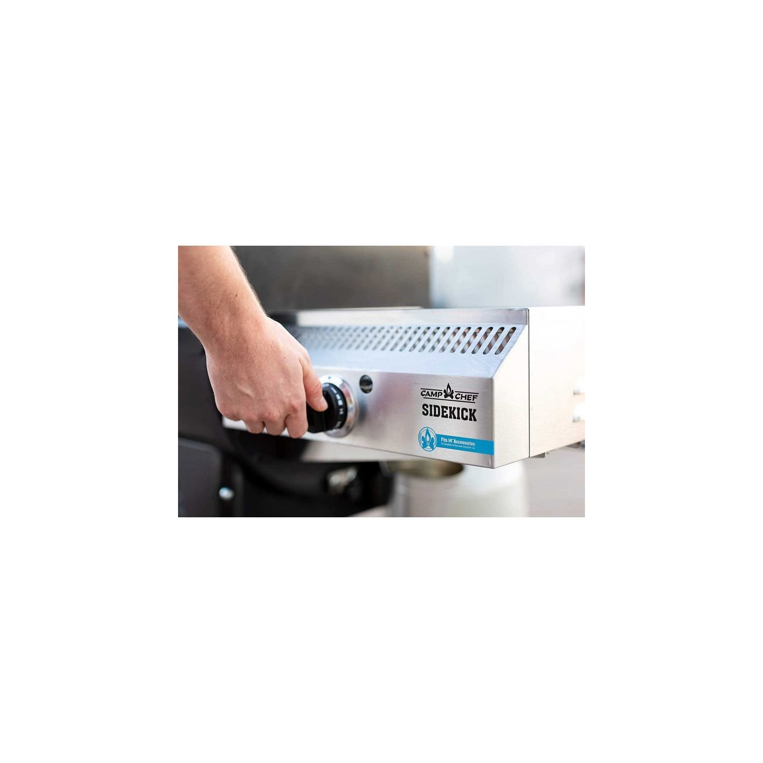 Arzatorul lateral pe gaz, de tip gratar, Sidekick chiar asta inseamna - partenerul imbatabil al gratarului cu peleti, in cursul procesului de gatit. Accesoriul cu un singur arzator se ataseaza cu usurinta la majoritatea gratarelor cu peleti de la Camp Chef. Este conceput pentru a va pune la dispozitie VersaGrillity, unul dintre sistemele de gatit de 35,5 cm de la Camp Chef, ceea ce inseamna ca puteti adauga o grila, o plita din fonta natur, un cuptor artizanal, o oala si multe altele. Sidekick are o putere de 8,2 kW - 28.000 BTU. Gratarul dvs. beneficiaza acum de mai multe optiuni si de mai mult confort de functionare cu Sidekick.
