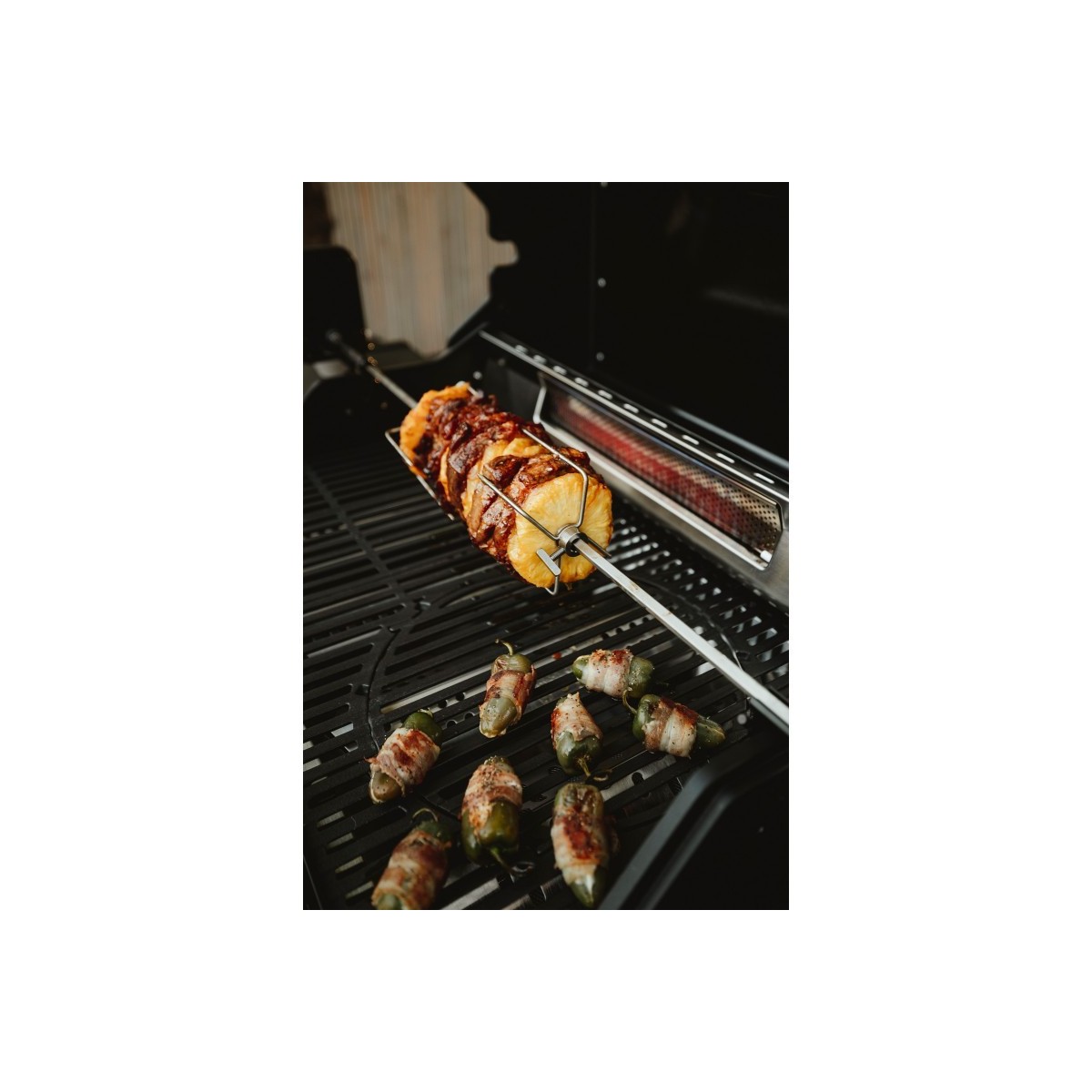 Acum, nici macar preparatele sofisticate nu mai reprezinta o problema. Fie ca este vorba de gyros, pui sau bucati mai mari de carne, kitul de rotiserie din otel inoxidabil va ofera posibilitati complet noi si transforma gratarul cu gaz Enders intr-un aparat multifunctional. Datorita motorului electric silentios, alimentele vor fi gatite uniform.