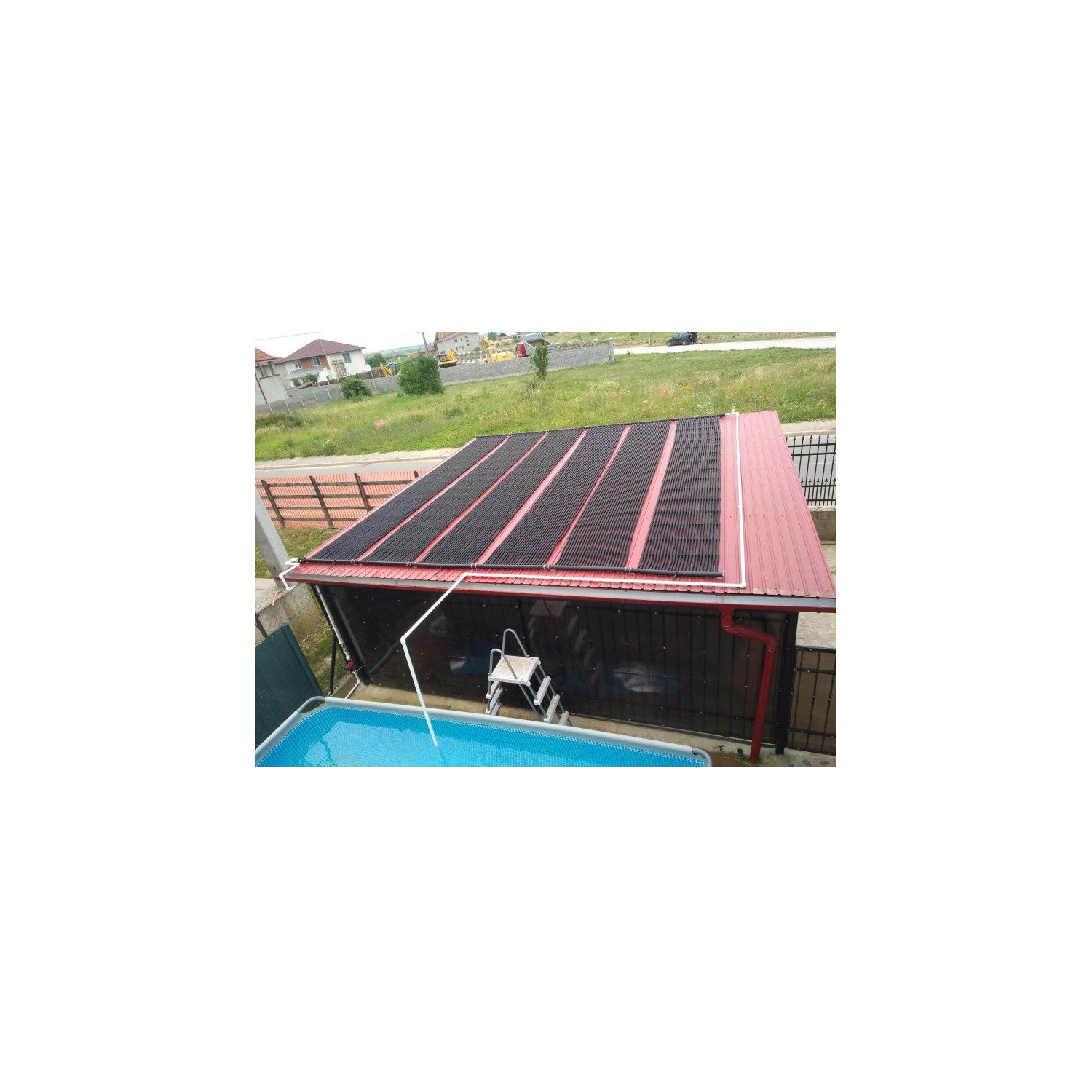 Din primavara pana toamna tarziu apa se va incalzi cu ajutorul panourilor solare prelungind durata de folosinta a piscinei.