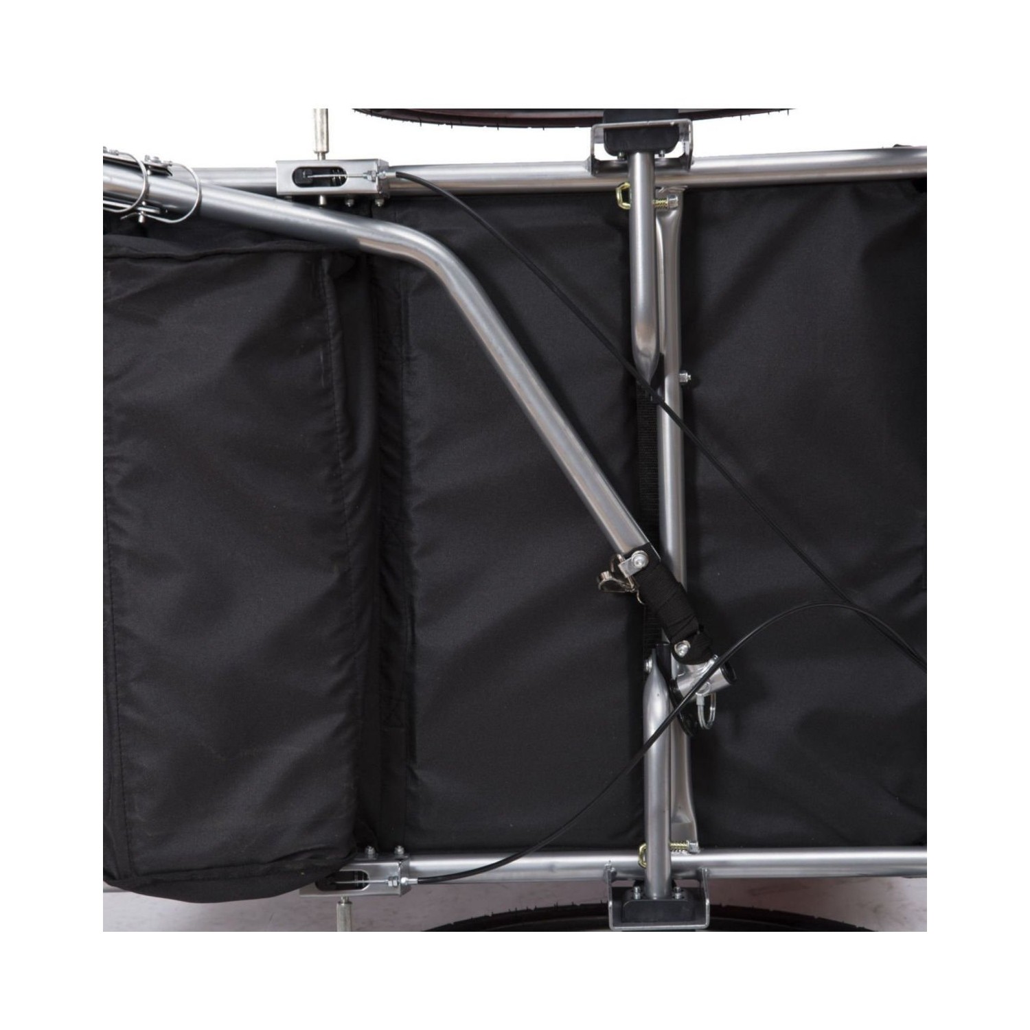 In caz de ploaie sau vant, copii dumneavoastra vor fi protejati de o prelata impermeabila iar în timpul plimbarilor de seara, puteţi acoperi remorca cu o plasa impotriva insectelor.