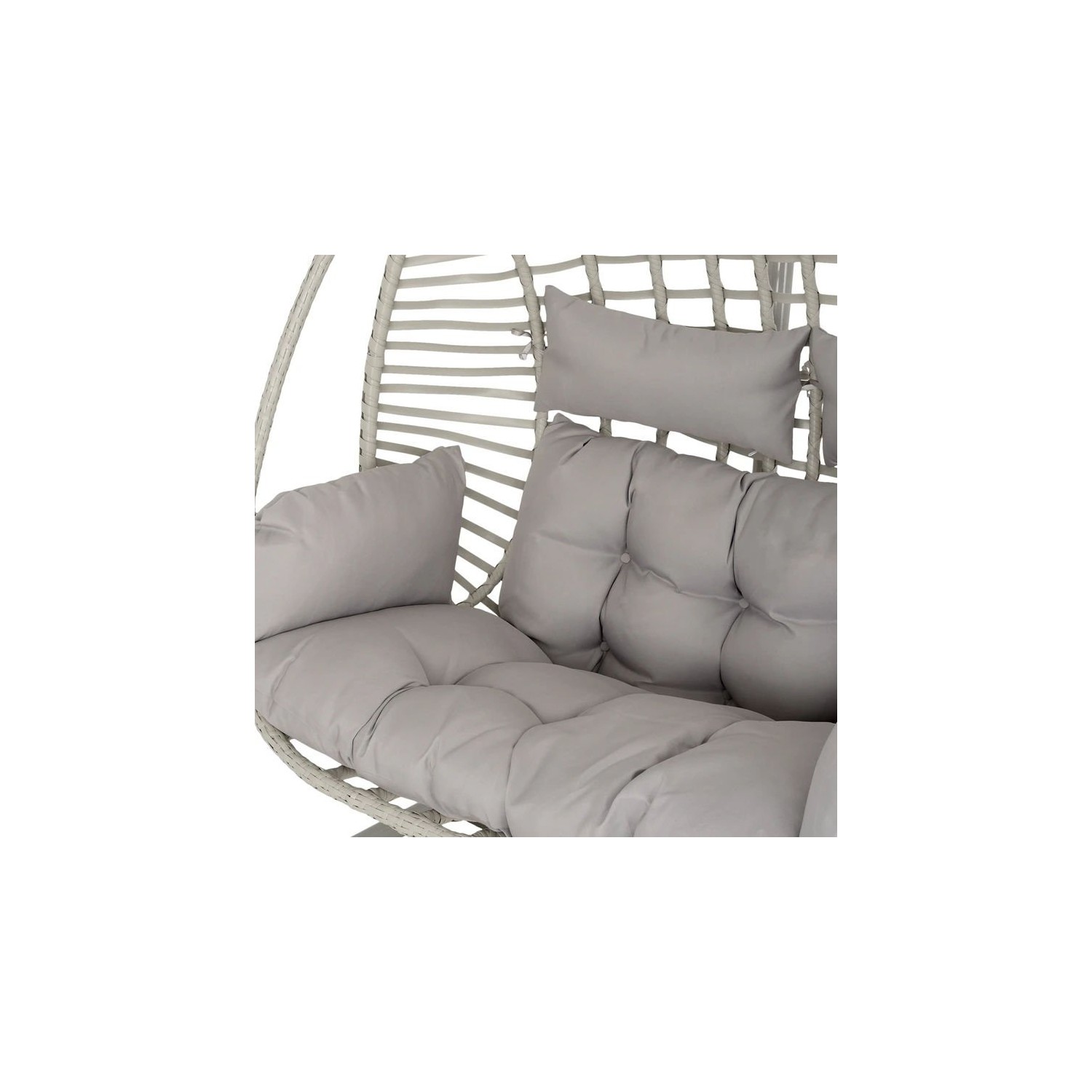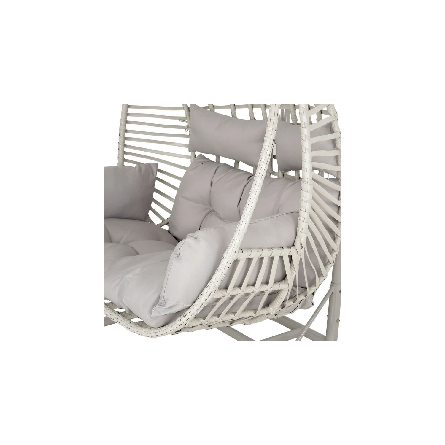 Structura leaganului este de otel vopsita în camp electrostatic si împletita cu fibre sintetice, polipropilena, cu protectie împotriva decolorarii, ce imita ratanul.