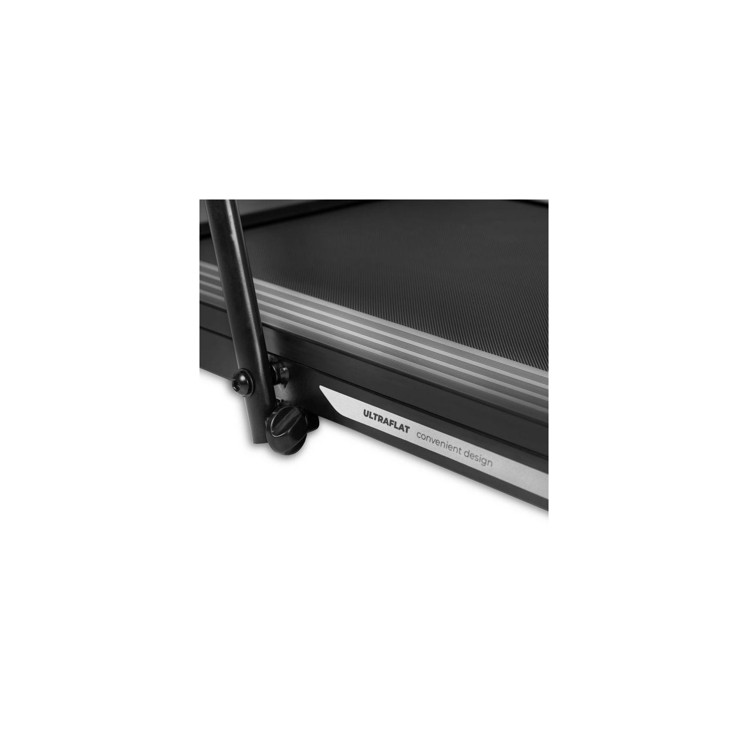 Banda de alergat poate fi pliata si depozitata pe orizontala si verticala, astfel incat sa se potriveasca in orice apartament si sa nu ocupe spatiu inutil atunci cand nu este utilizata.