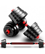 Set gantere reglabile BodyFit 40 kg , formata din doua gantere a cate 20 kg, si o bara cu ajutorul careie se poate face si haltera.