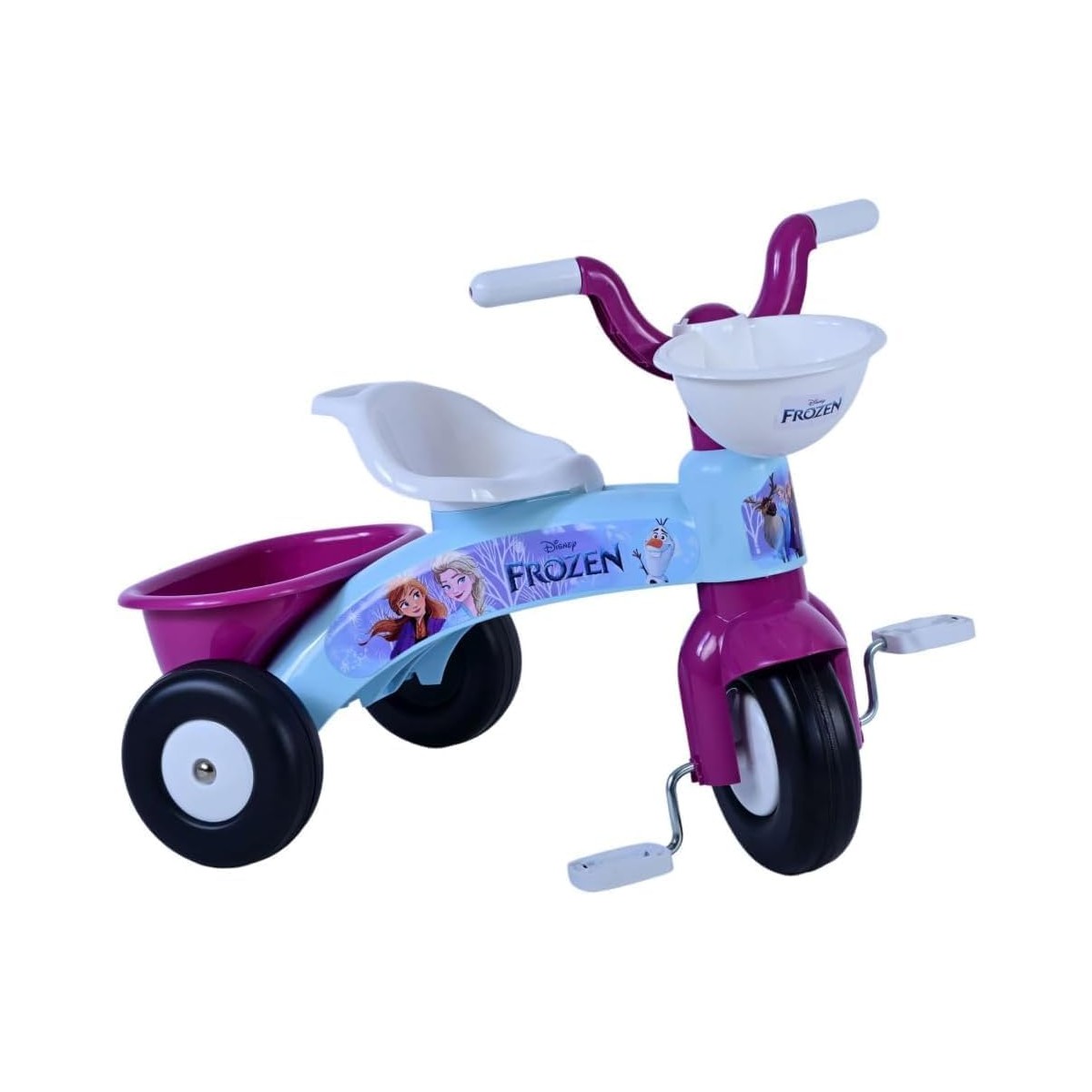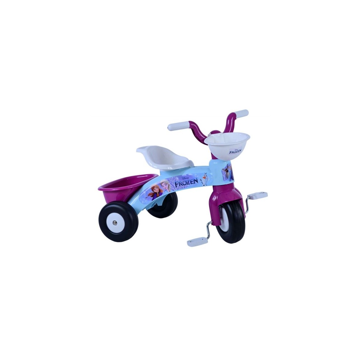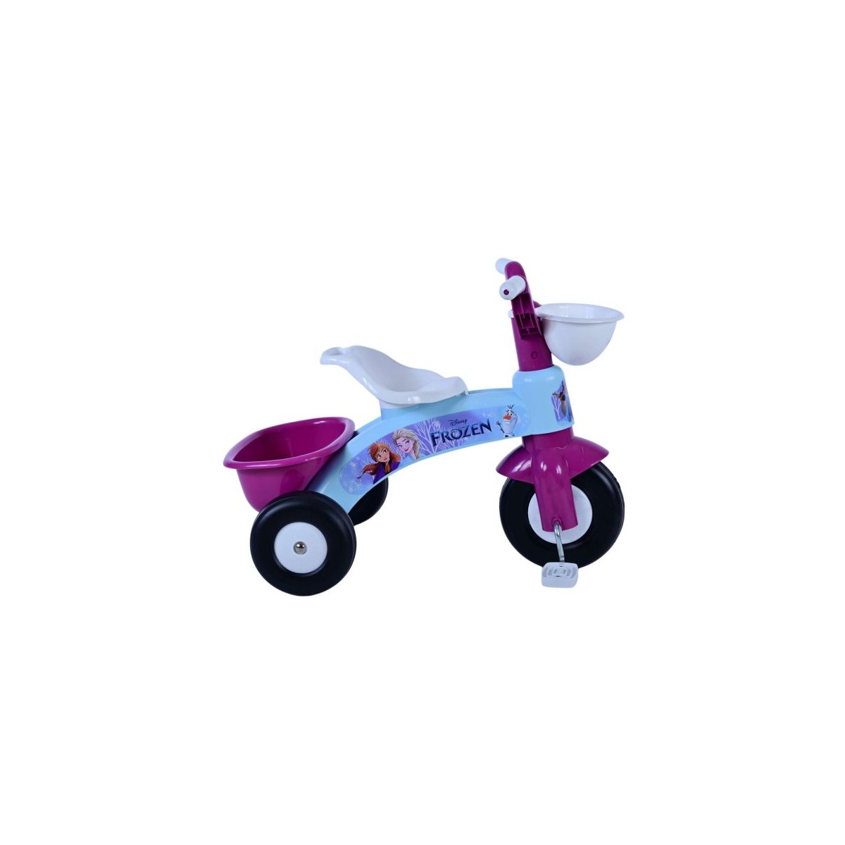 Tricicleta Disney Frozen este alegerea perfecta pentru primele aventuri ale celor mici la pedale. Cu un design vesel, decorata cu Elsa si Anna din filmul „Frozen”, aceasta tricicleta ii va incanta pe micii fani ai regatului de gheata.