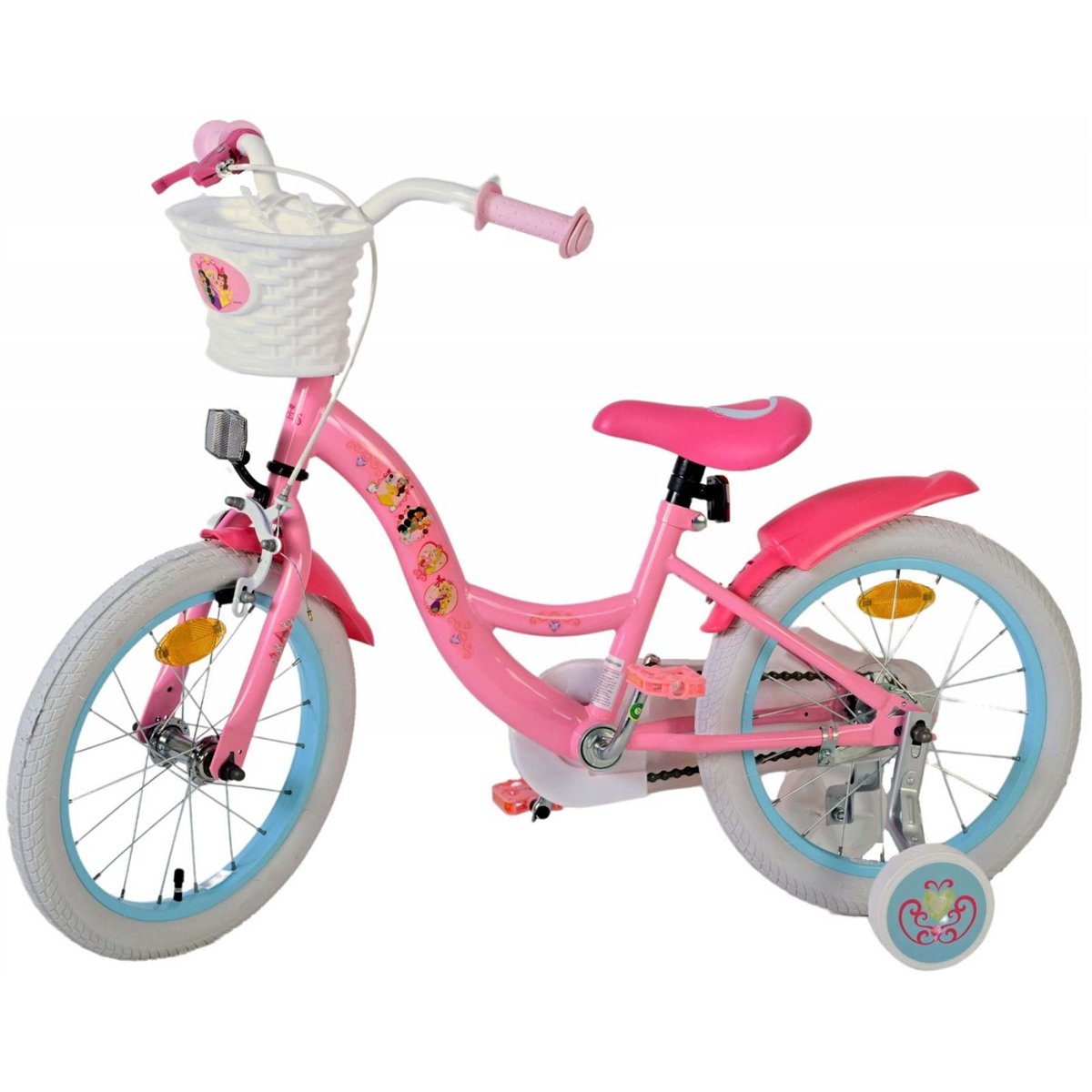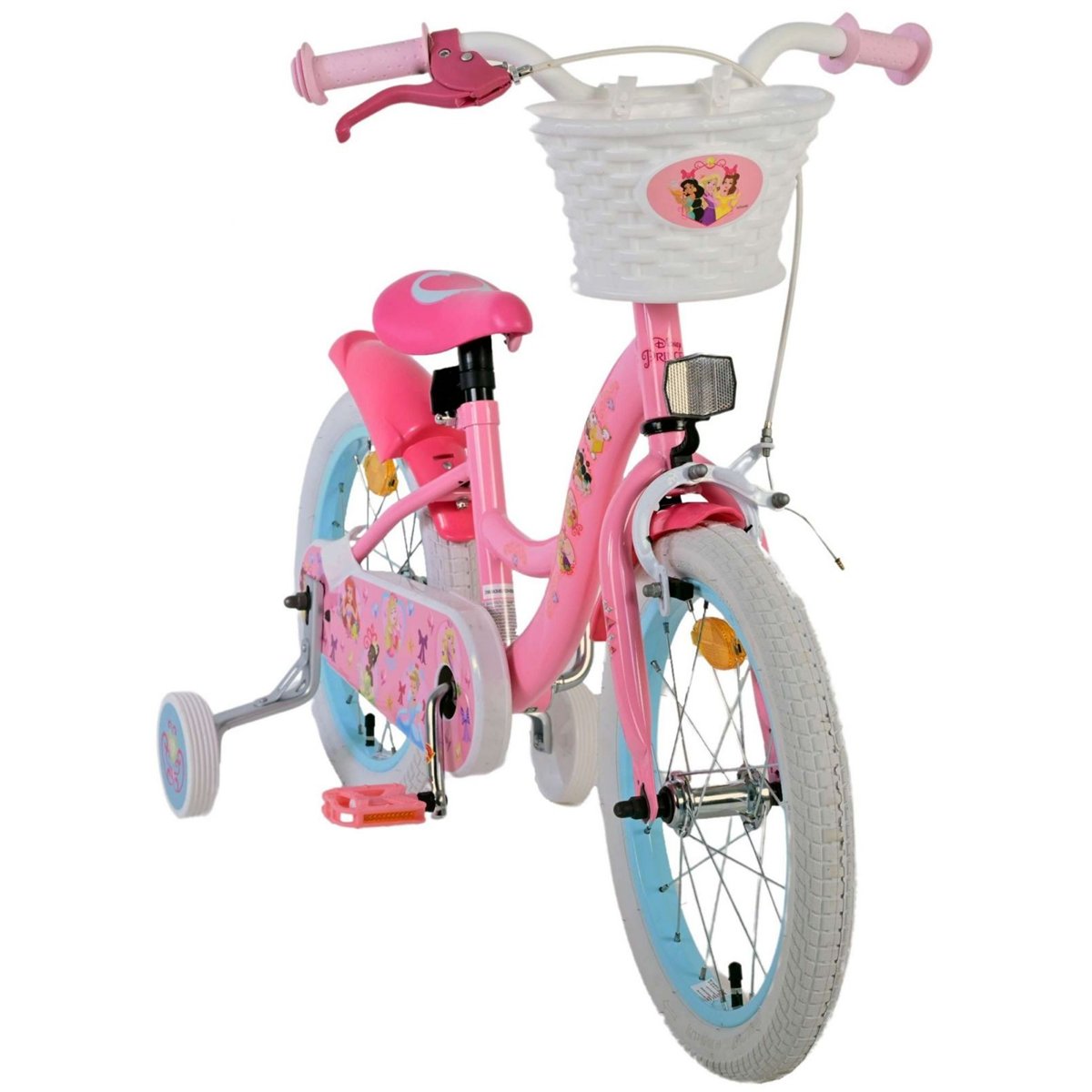 Bicicleta este completata cu cos de bicicleta la indemana, pentru ca mica printesa sa isi poata lua lucrurile cu ea oriunde merge.