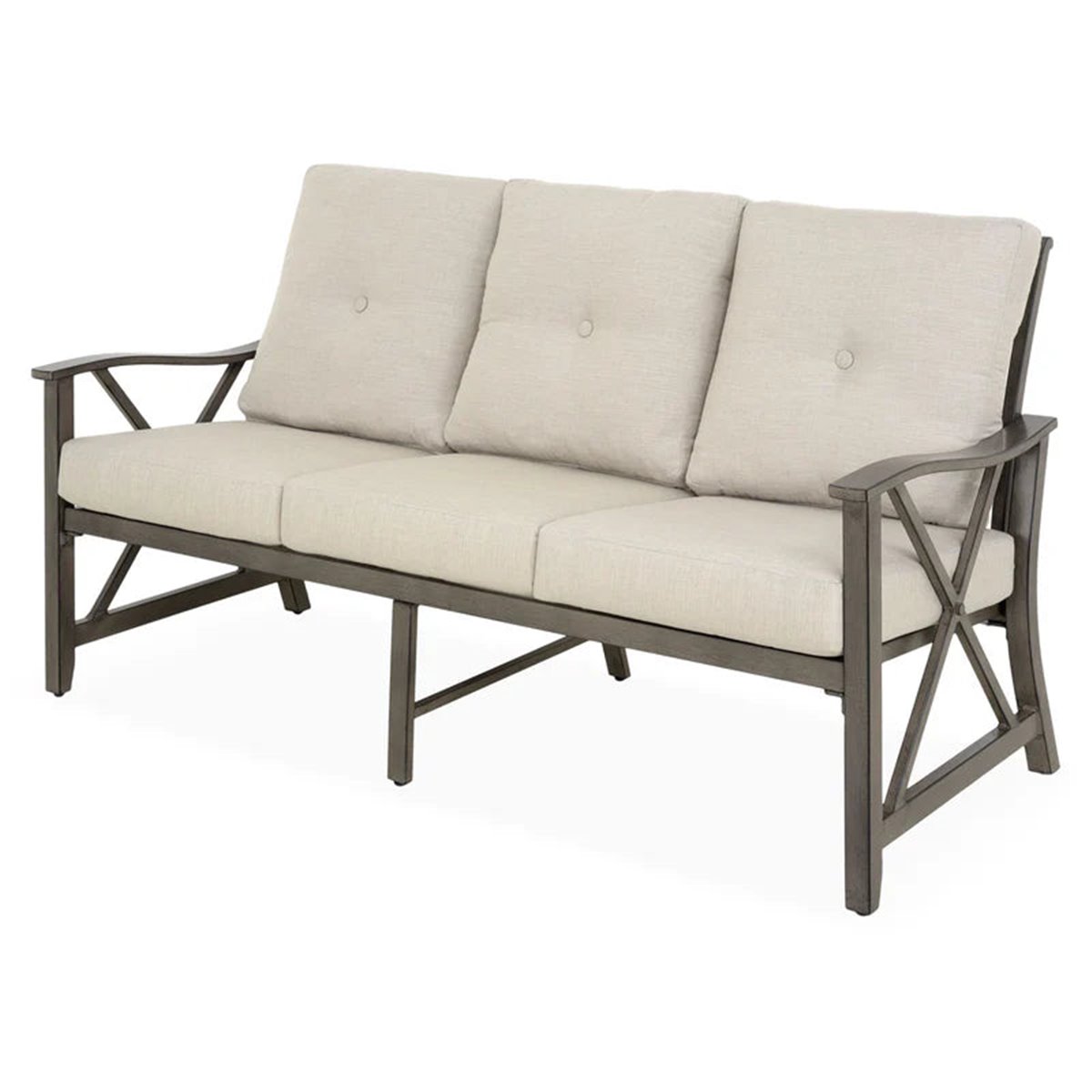 Realizata din structura solida de aluminiu vopsita in camp electrostatic. Include perne din poliuretan imbracata cu tesatura Sunbrella cu protectie UV si impotriva umezelii. Husele sunt prevazut cu fermoar pentru a fi mai usor de indepartat si curatat.