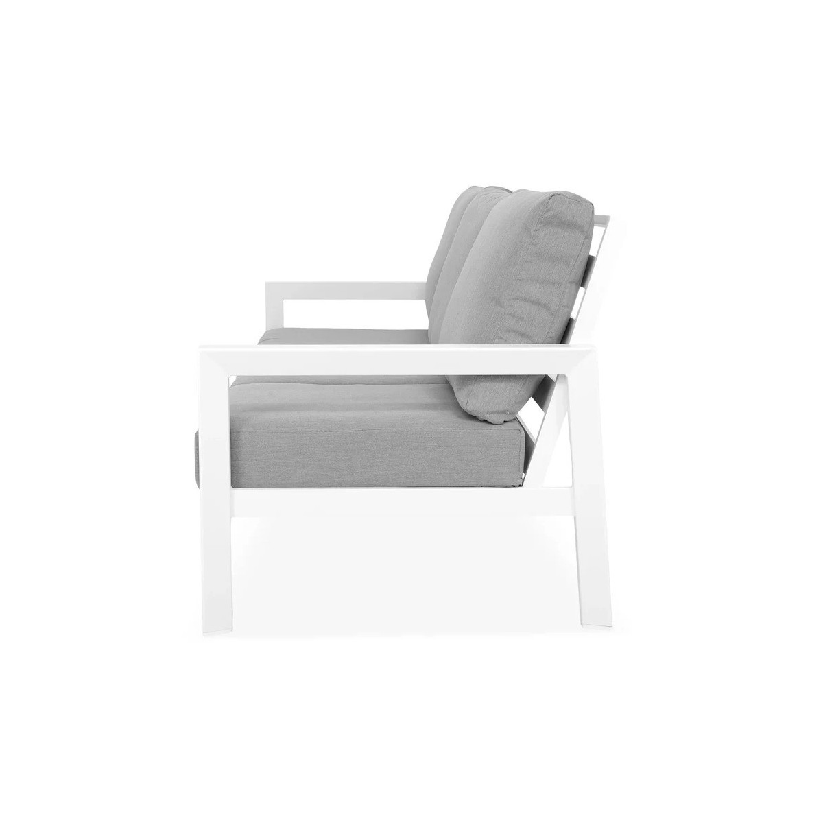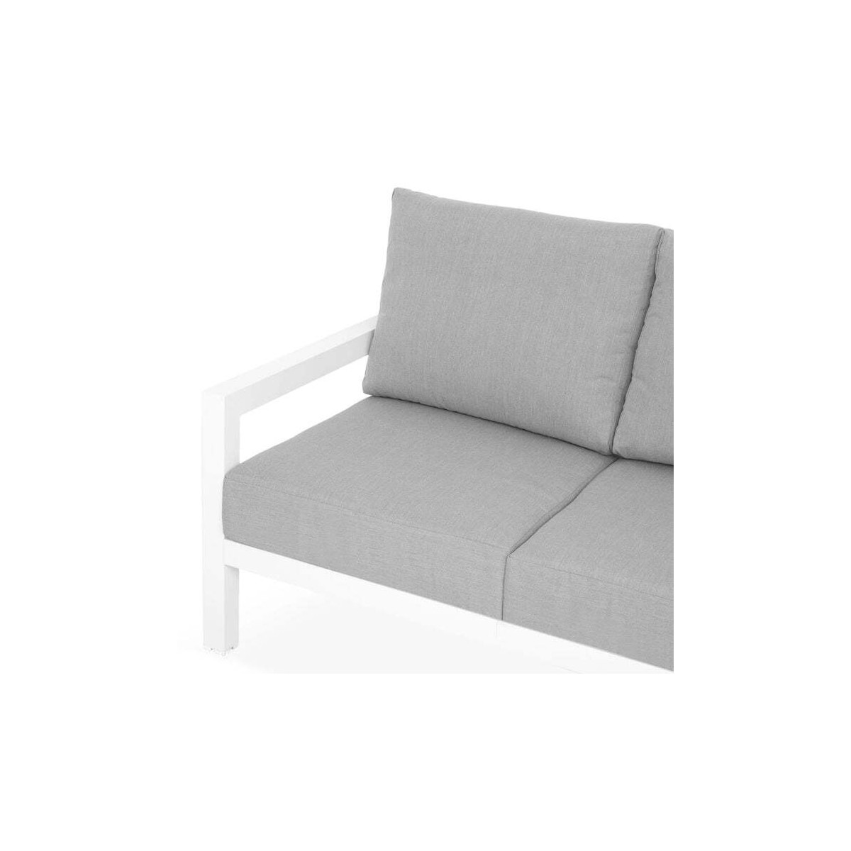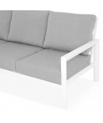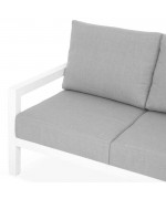Bucurați-vă de întregul sezon cald, și nu numai, de momentele de pauză sau socializare împreună cu cei apropiați, chiar la voi acasă, pe terasă sau în grădina voastră. Canapeaua din gama Matzo este opțiunea de decor care se integrează cu ușurință datorită eleganței sale caracterizate de simplitate. Structura albă și pernele gri conlucrează la asigurarea unei atmosfere relaxate și primitoare. Piesa este realizată din structură solidă din aluminiu, vopsită în câmp electrostatic. Sunt incluse pernele îmbrăcate în țesătură Olefin cu protecție împotriva umezelii și a razelor UV. Husele sunt prevăzute cu fermoar pentru a fi ușor de îndepărtat și curățat.
