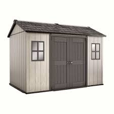 Casuta pentru gradina este realizata din material compozit ce imita perfect lemnul, insa nu mai necesita intretinere si rezista la exterior pe termen lung.