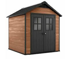 Casuta pentru gradina realizata din material compozit ce imita perfect lemnul, insa nu mai necesita intretinere si rezista la exterior pe termen lung.