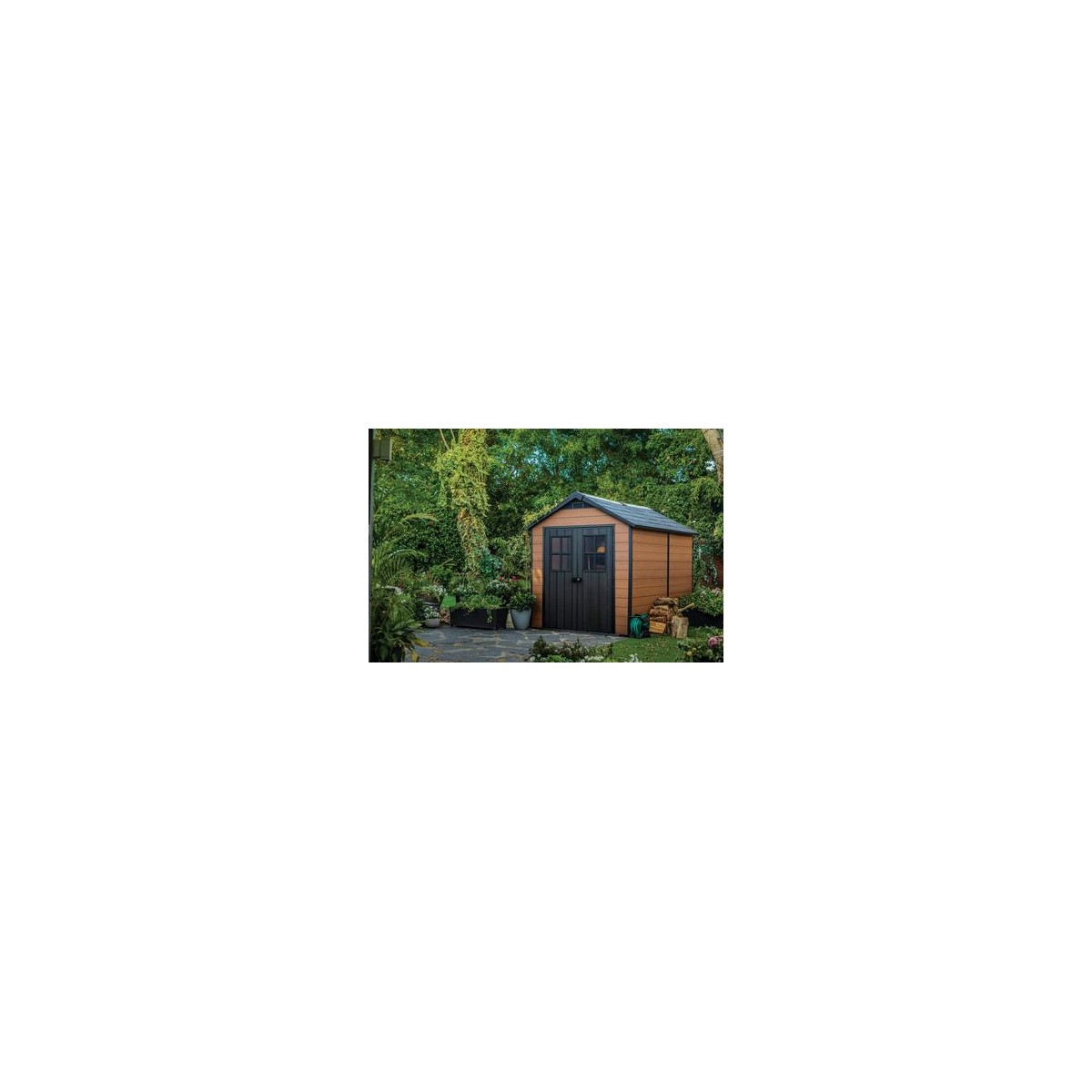 Arata si seamana la atingere cu o casuta din lemn natural, dar datorita folosirii celor mai noi materiale Evotech +, peretii sai sunt foarte durabili, rezistenti la intemperii si nu necesita întretinere - ca urmare, veti avea o casuta care nu rugineste niciodata, nu putrezeste si nu se cojeste.