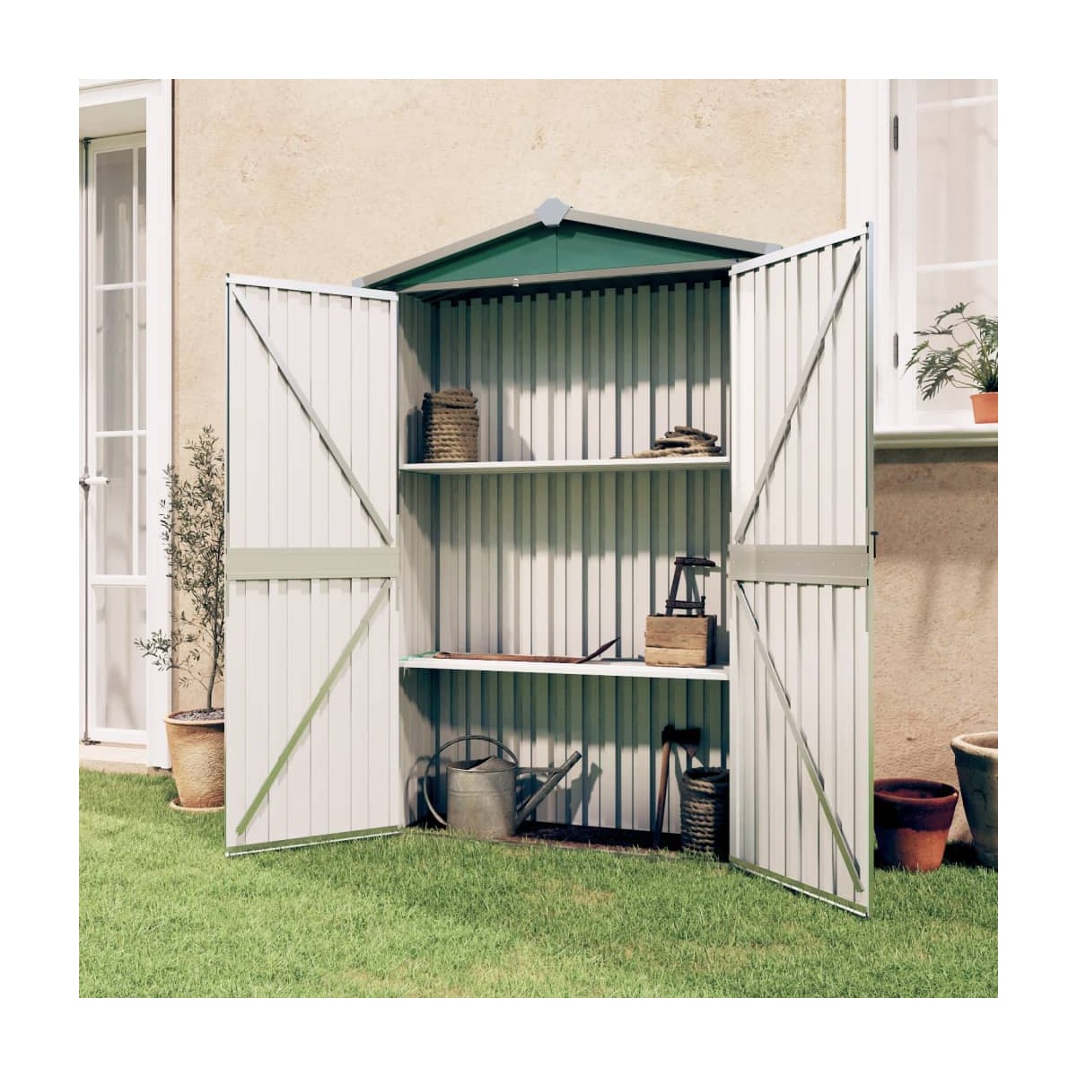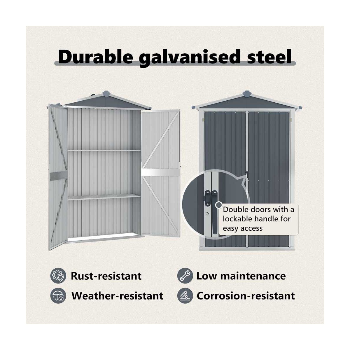 ☀️ Beneficiu special: depozitează-ți uneltele și accesoriile de grădină într-un spațiu compact, protejat și ușor de utilizat, fără întreținere suplimentară!