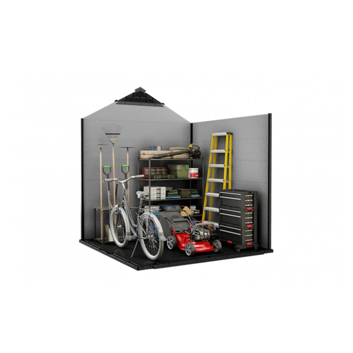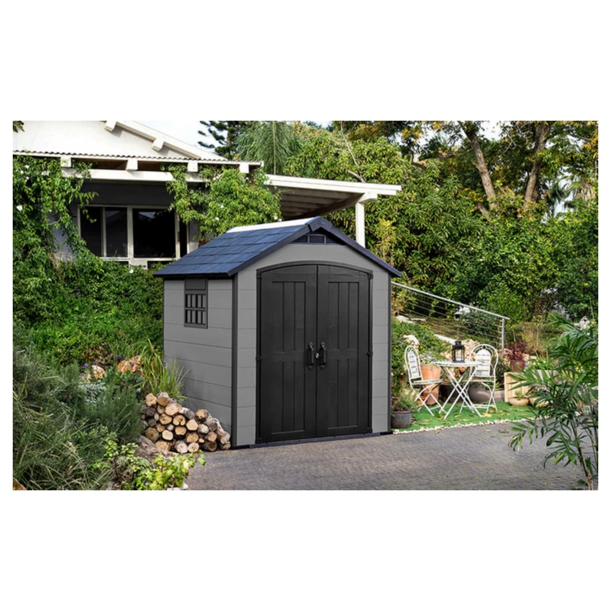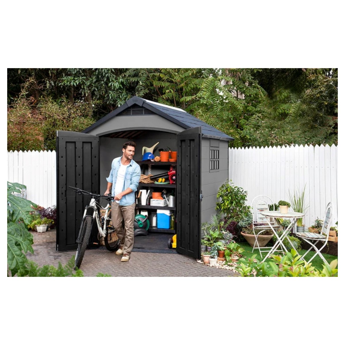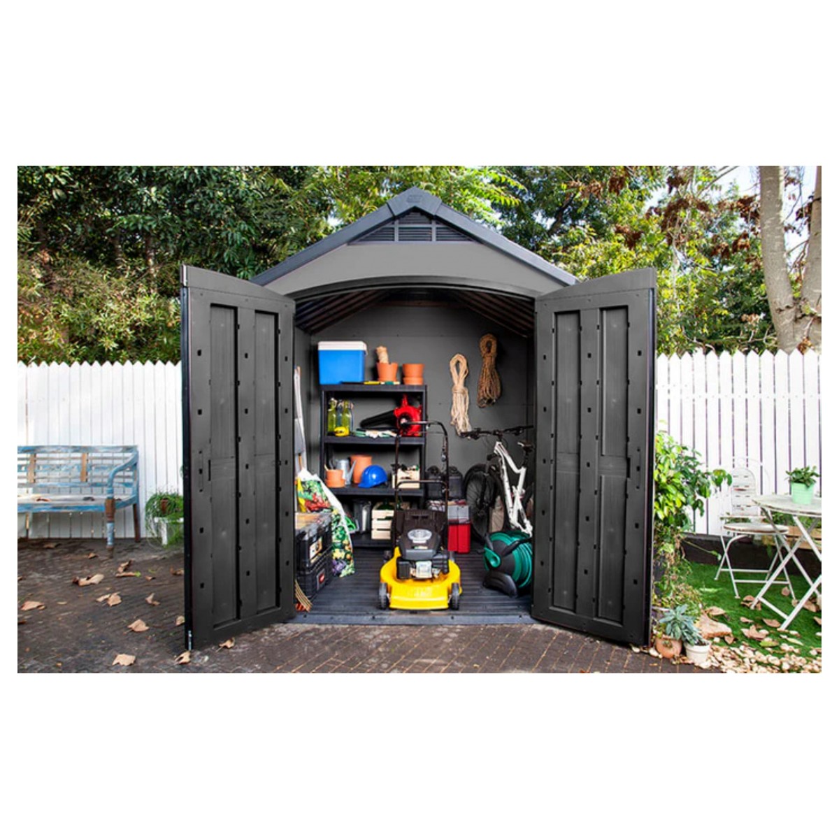 ✔️ Capacitate mare de depozitare – perfect pentru unelte de grădină, biciclete, grătar și unelte de bricolaj