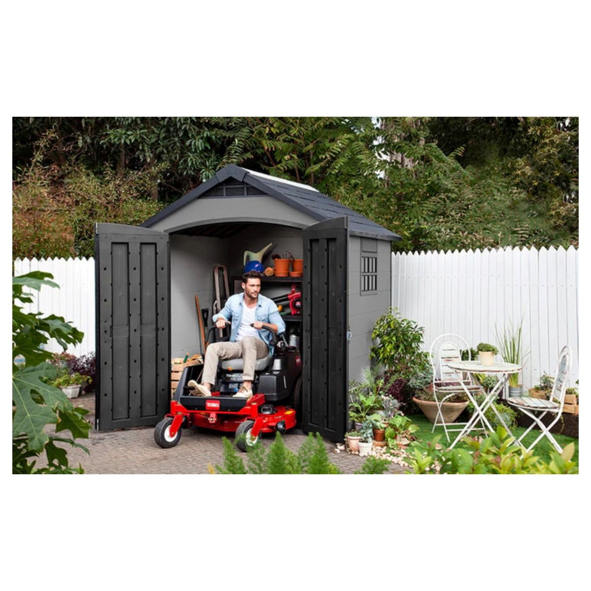 Alege căsuța de grădină Premier 757 pentru o soluție de depozitare durabilă, estetică și eficientă!