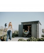Ideala pentru depozitarea uneltelor, mobilierului de gradina sau altor echipamente, oferind protectie si organizare eficienta.