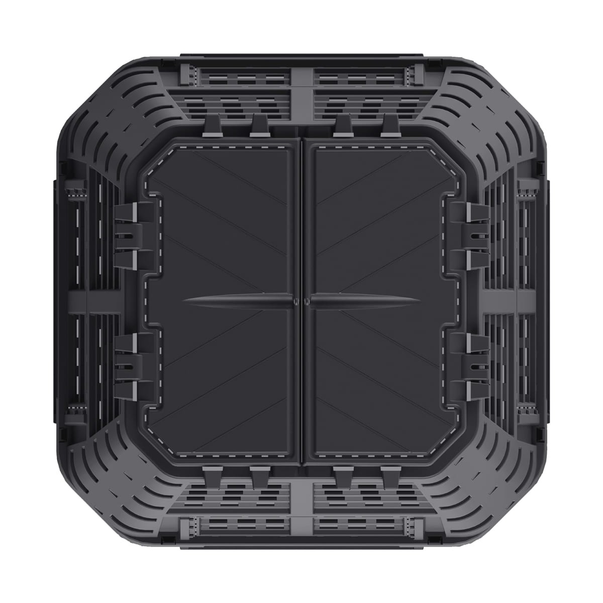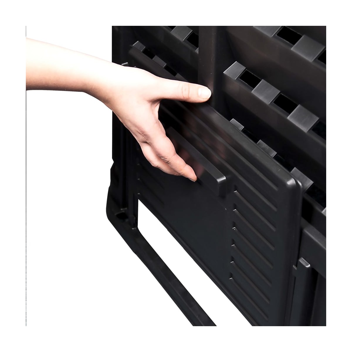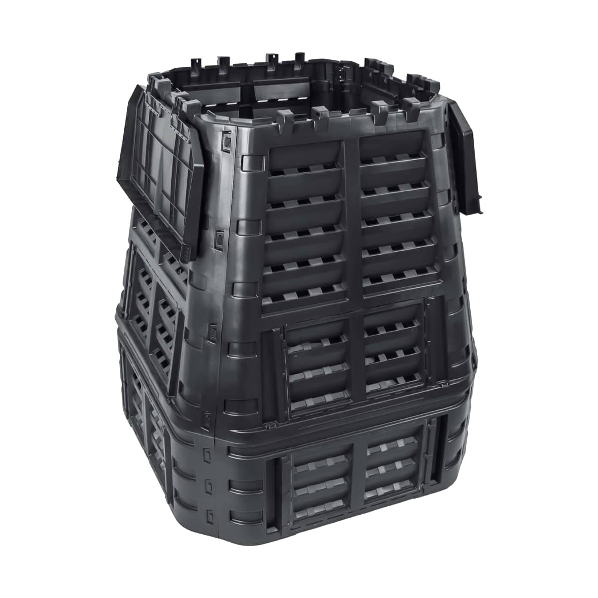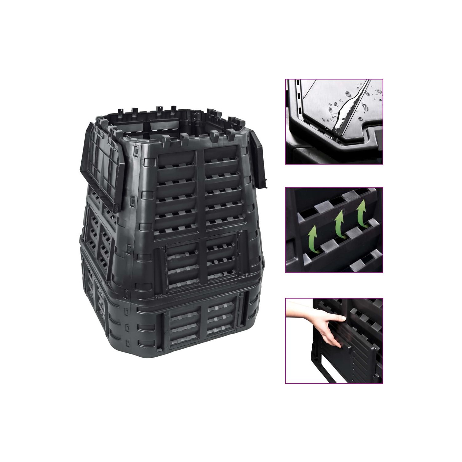 ✅ Utilizare practică – capacele superioare facilitează alimentarea cu resturi organice, iar clapeta inferioară permite colectarea ușoară a compostului matur.