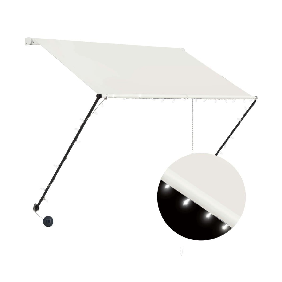 Aceasta copertina retractabila este ideala pentru folosire in fata ferestrelor, pe terasa, in balcon sau in gradina. Aceasta copertina rezistenta la apa, raze UV si intemperii este fabricata din material textil de calitate superioara cu invelis din PA. Cadrul rezistent din otel asigura robustete si durabilitate copertinei. Copertina din poliester usor de curatat poate fi indepartata si spalata. In plus, acest produs poate fi folosit nu doar ca o copertina obisnuita, ci si pentru a acoperi complet fereastra. Datorita barei de sustinere si lantului, aceasta copertina este retractabila. Mai mult decat atat, inaltimea si unghiul copertinei pot fi reglate pentru a oferi un nivel maxim de umbra. Becurile LED alimentate cu lumina solara asigura un iluminat eficient energetic pe timp de noapte. Produsul este usor de asamblat.
