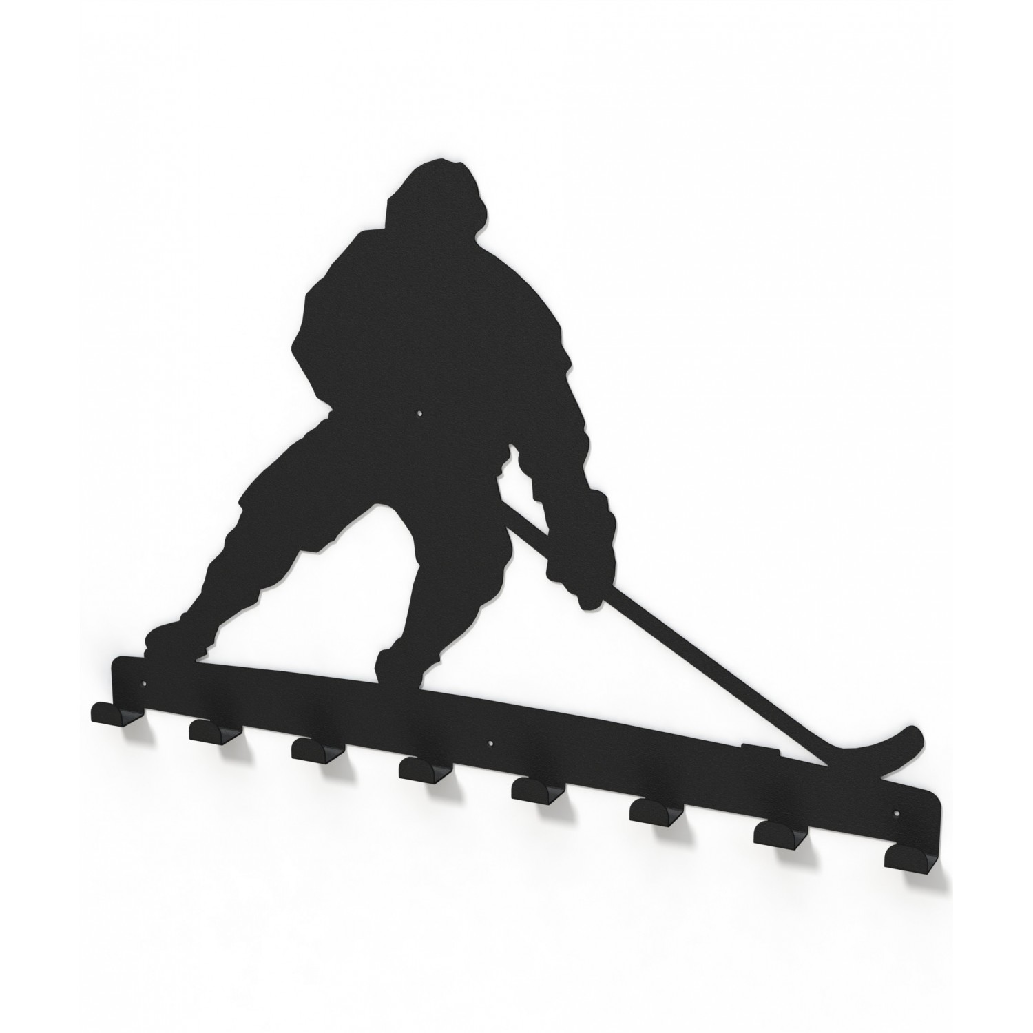 Cuiermetalic cu forma de jucator de hochei cu puc, aduce un aer familiar, intim holului, vestiarului sau spatiului unde este amplasat.