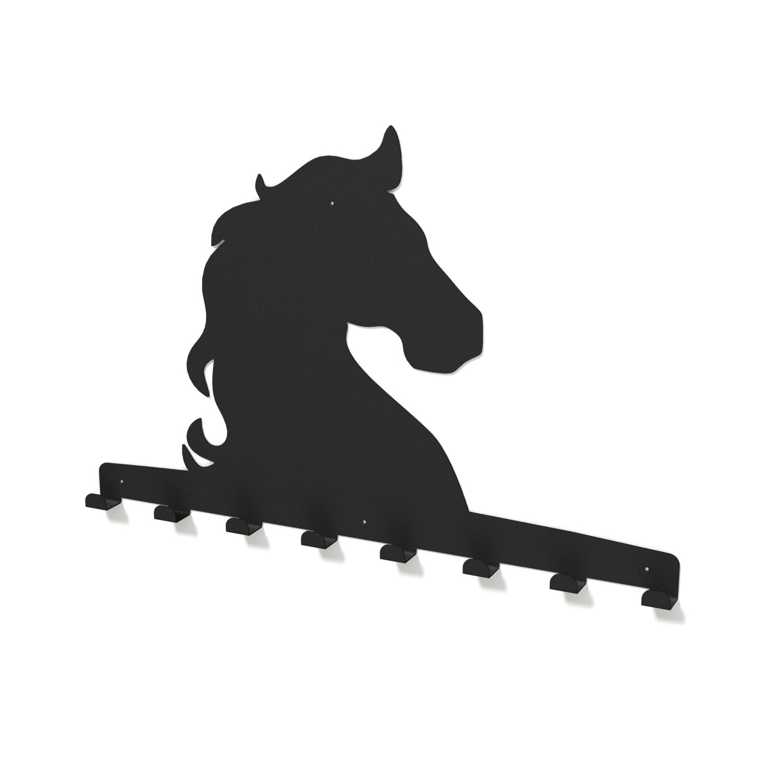 Cuiermetalic cu personalizare cap de cal, aduce un aer familiar, intim holului, vestiarului sau spatiului unde este amplasat.