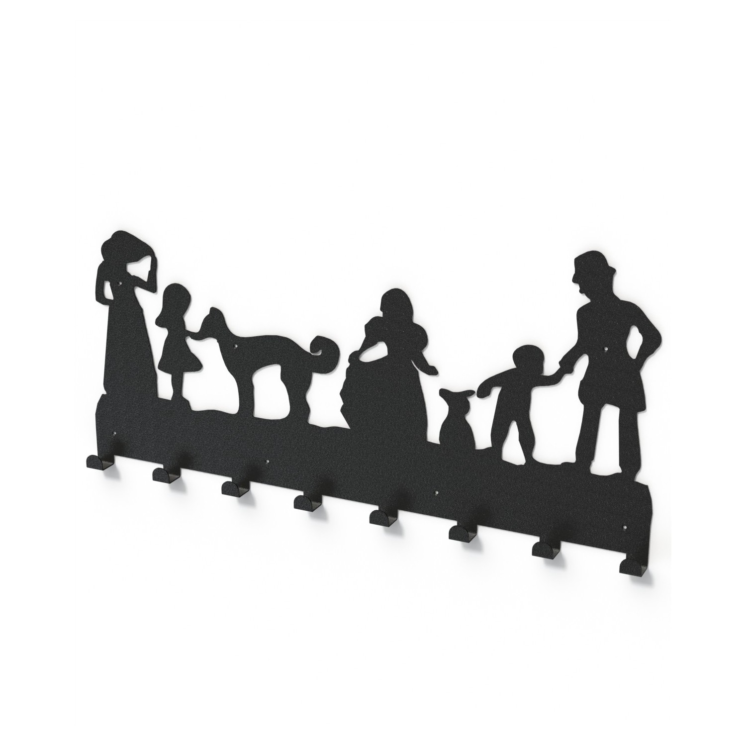 Cuierul metalic in care este presenta silueta familiei, aduce un aer familiar, intim holului, vestiarului sau spatiului unde este amplasat.