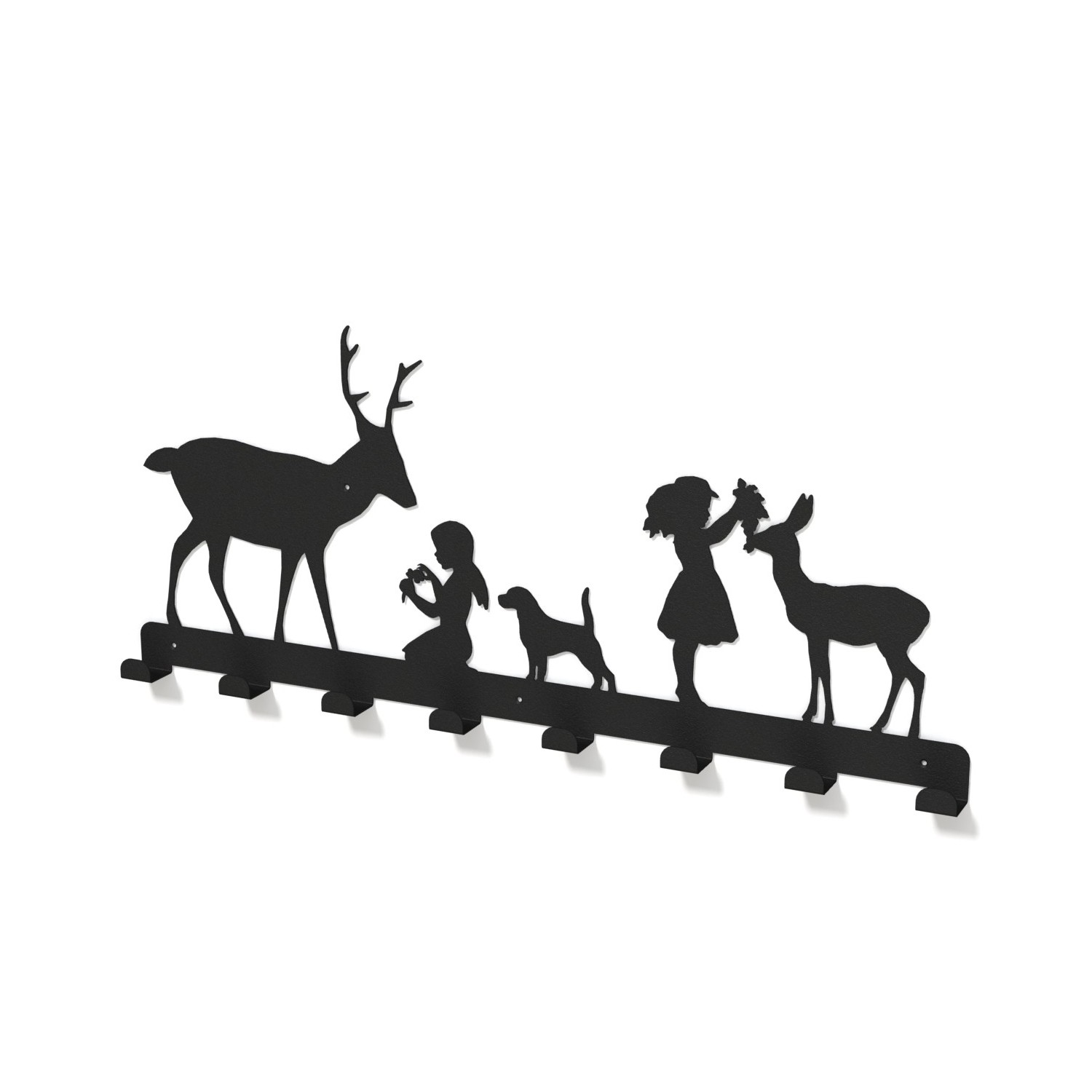 Cuierul metalic in forma de "grup copii care hranesc uncerb si o caprioara", aduce un aer nonconformist, vintage, holului sau vestiarului unde este amplasat.