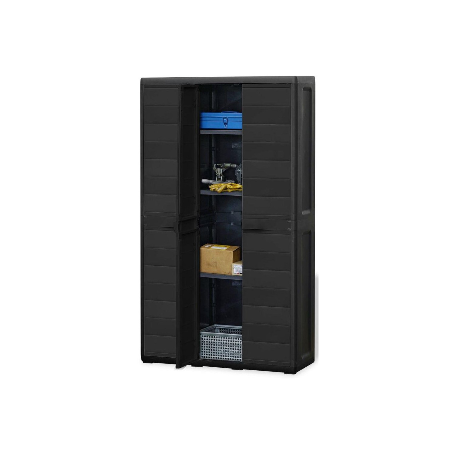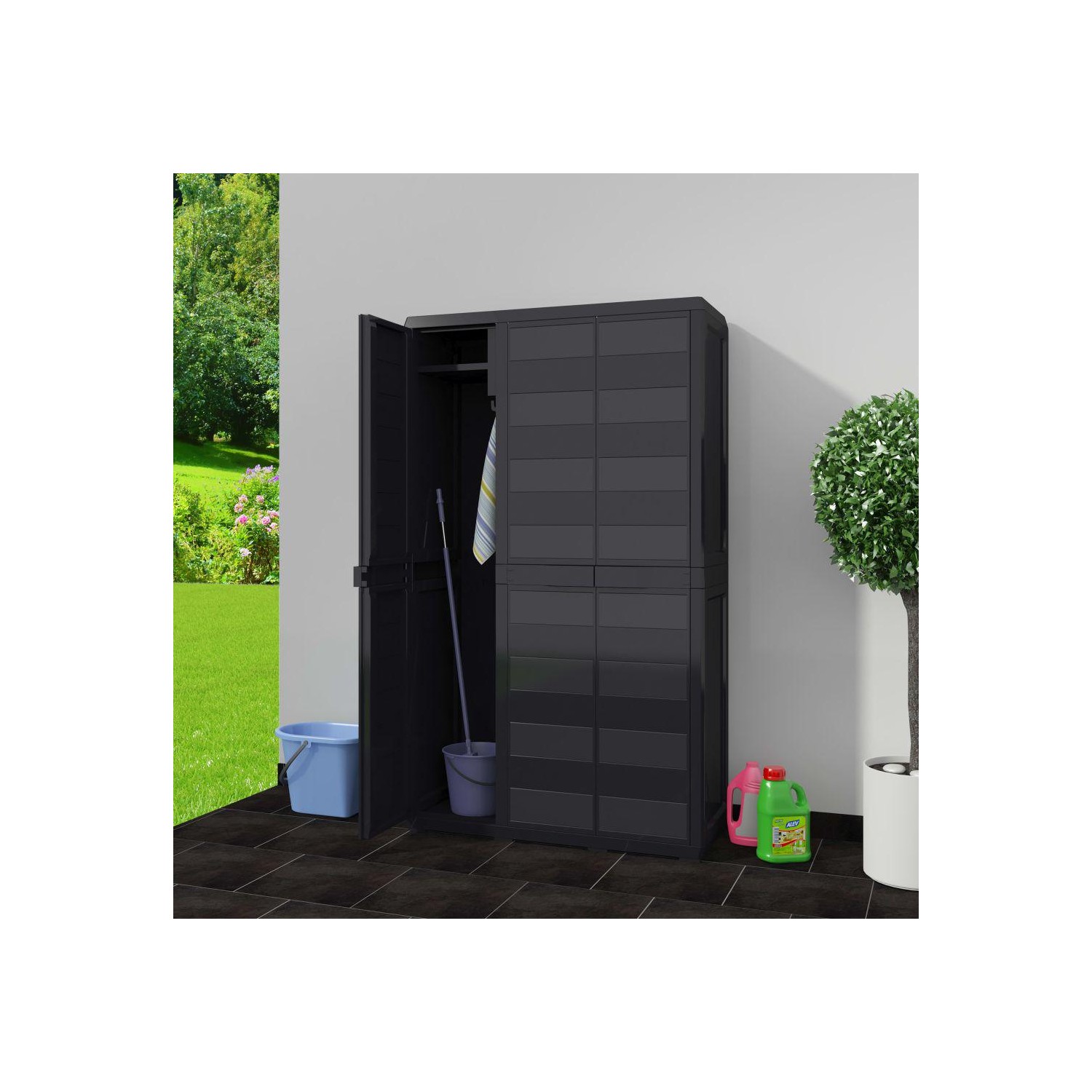 Dulapul nostru de depozitare, de calitate superioară, este ideal pentru organizarea și depozitarea proviziilor, uneltelor sau a altor obiecte în grădină sau în curtea interioară, etc. Acest dulap se va integra în orice decor datorită designului său mereu la modă. Acest dulap certificat TÜV-GS este fabricat din polipropilenă durabilă (PP) robustă. Dulapul de depozitare dispune de rafturi aerisite, care pot fi reglate pentru a ține articole de diferite dimensiuni. Dulapul de grădină poate fi încuiat cu un lacăt pentru siguranță suplimentară (încuietoarea nu este inclusă). Acest dulap de depozitare de exterior este foarte ușor de curățat. Dulapul de grădină are un design compact și va folosi la maxim un spațiu limitat. Ușor de asamblat.