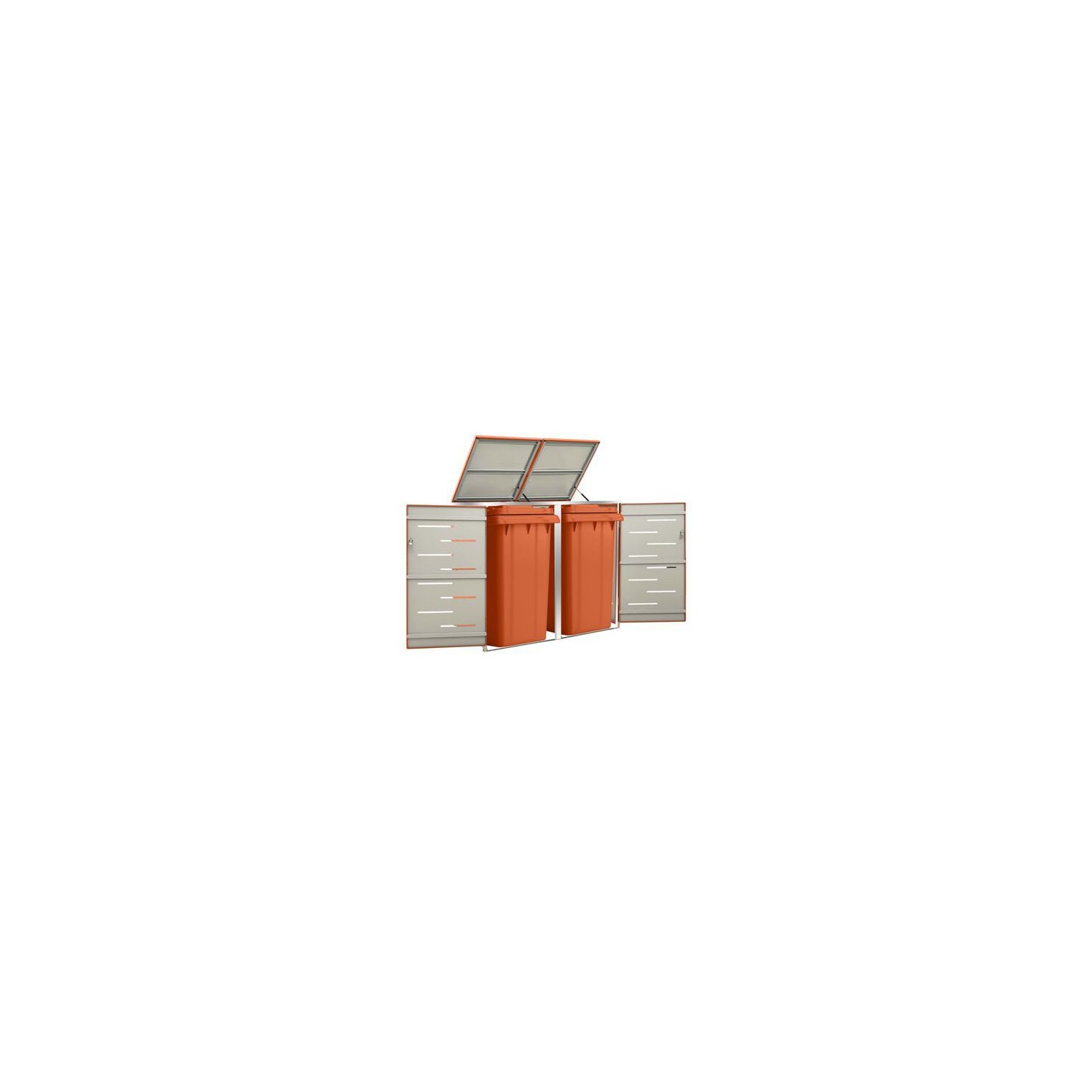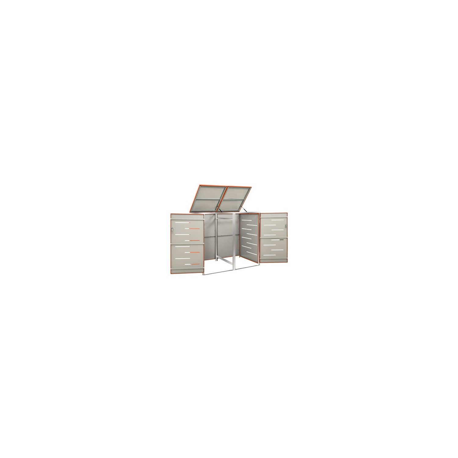 Aceasta magazie pentru pubela este fabricata din panouri de otel galvanizat si un cadru din otel inoxidabil, ceea ce o face extrem de robusta si protejata impotriva ruginii.