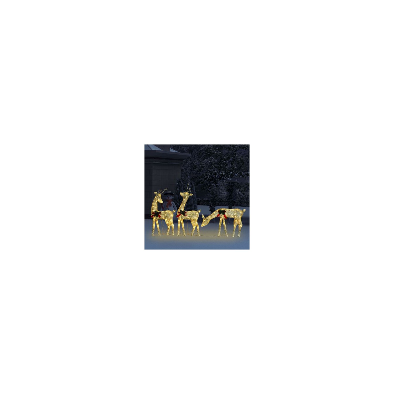 Familie reni de Craciun, auriu/alb cald, 270x7x90 cm, plasa