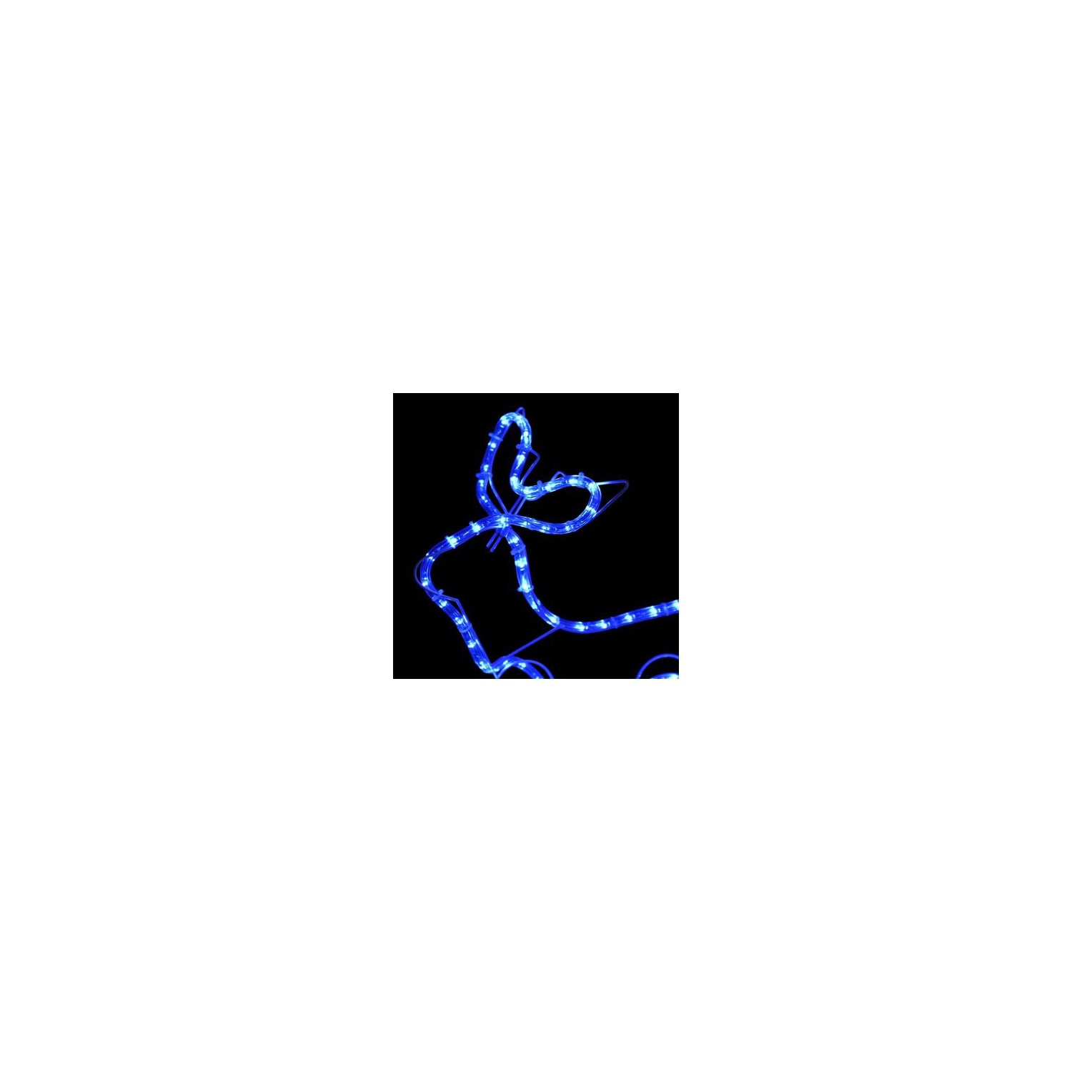 Renii si sania sunt luminati cu LED-uri cu lumina albastra, pentru o stralucire blanda, ceea ce face din ei un decor perfect, atat in interior, cat si in exterior.