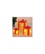 Hi cutie cadou de craciun iluminata cu led, cu fundita rosie, 3 buc.