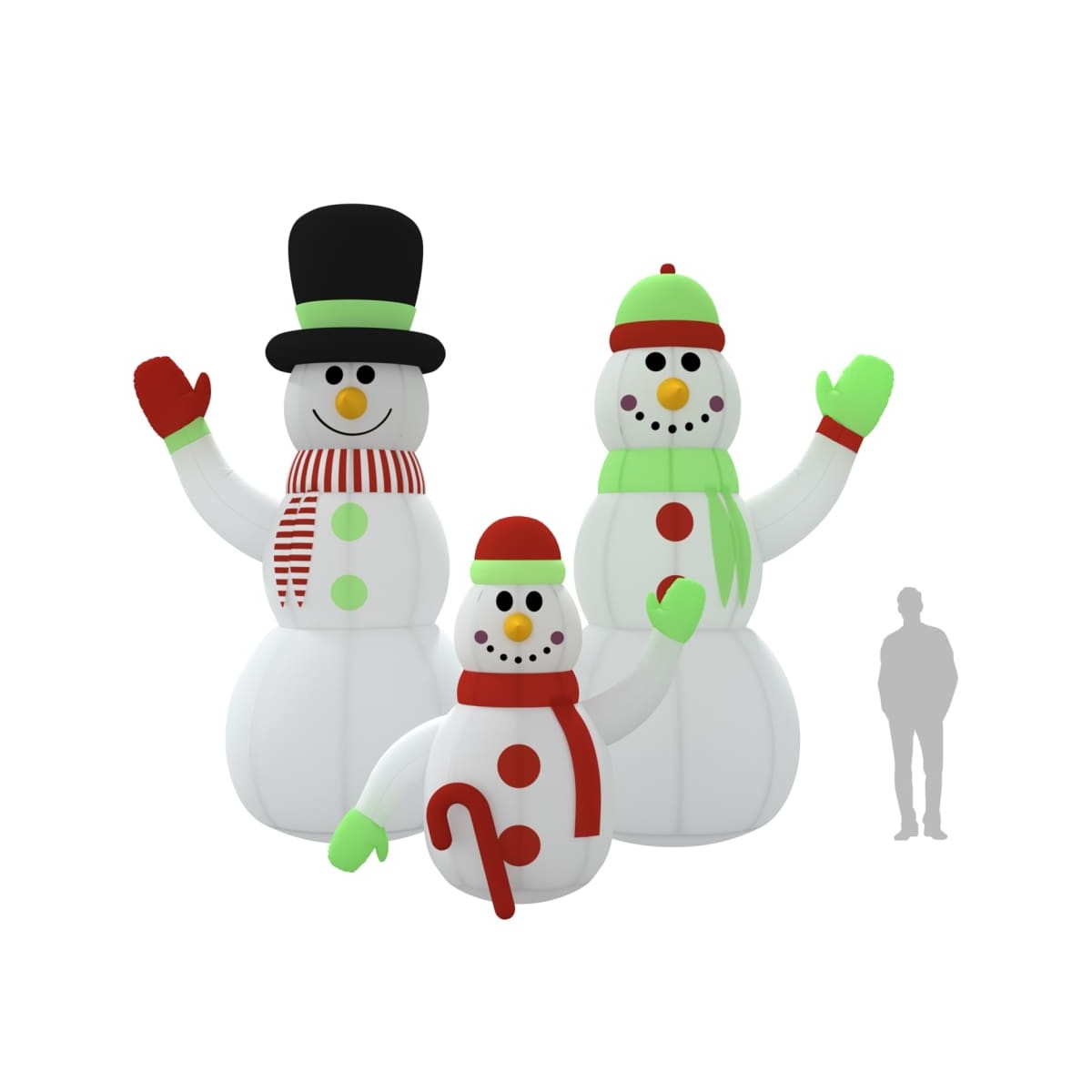 Transforma-ti gradina sau livingul intr-un taram de poveste cu aceasta familie de oameni de zapada gonflabili, perfecta pentru sarbatorile de iarna! Cu design multicolor, lumini LED integrate si dimensiuni impresionante, acest decor de Craciun va atrage toate privirile si va aduce magia sarbatorilor chiar la tine acasa.