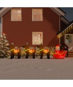 Decoratiune gonflabila cu Mos Craciun si reni, LED-uri, 138 cm