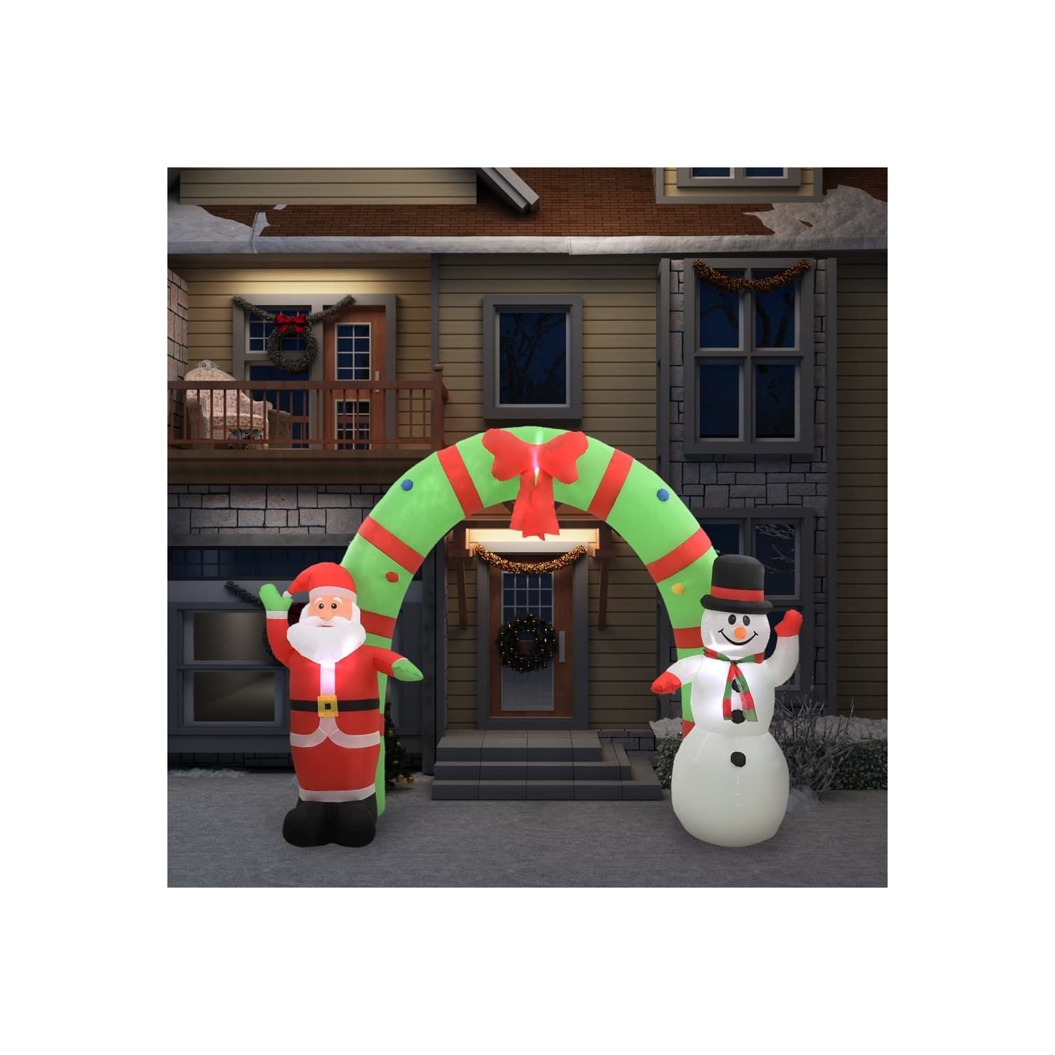 Decoratiune gonflabila Mos Craciun si om de zapada, LED, 223 cm