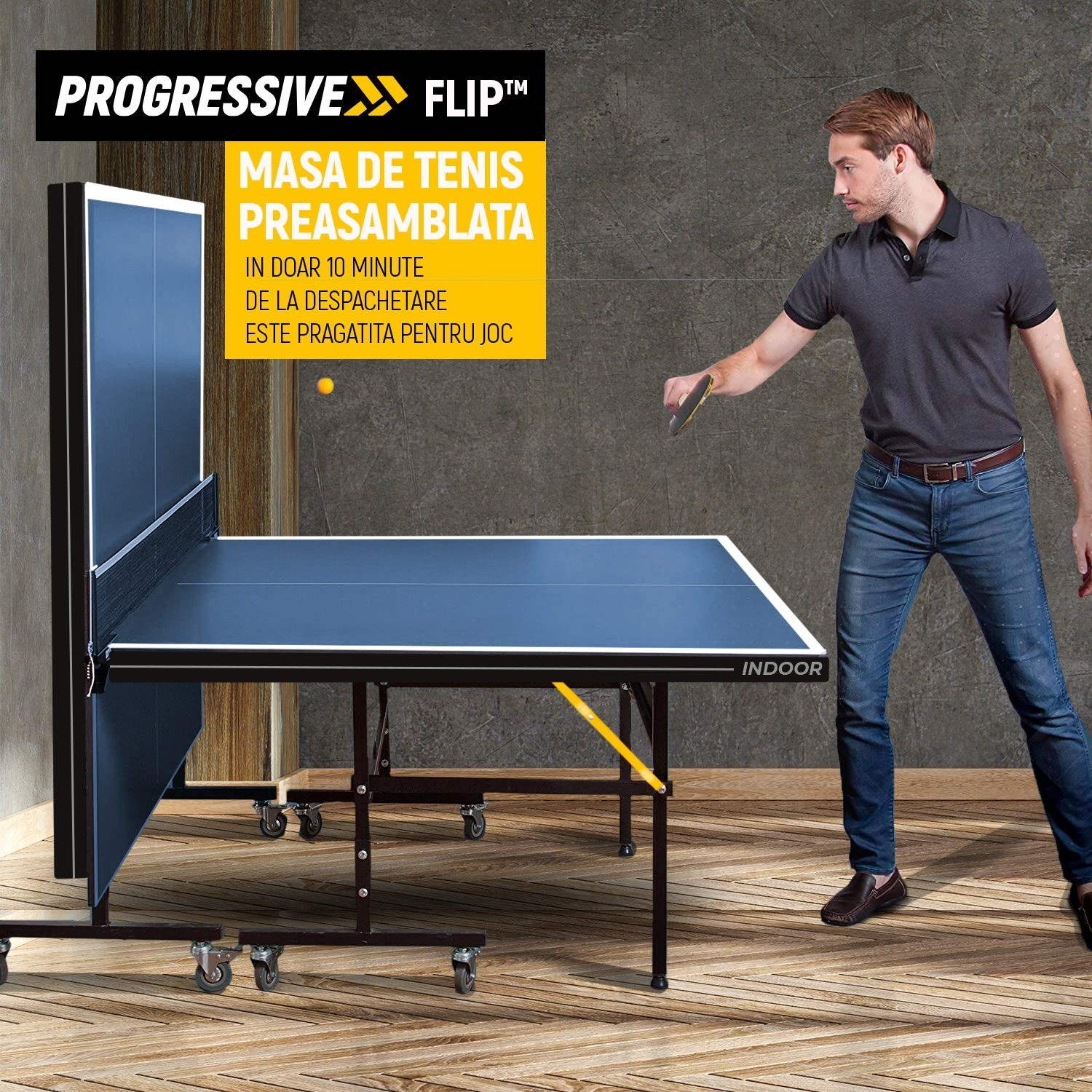 Aceasta masa ping pong model de interior este ideala pentru competitii si distractie acasa sau la birou. Datorita designului QuickPlay, masa ping pong este gata de utilizare in doar 10 minute - vine 95% preasamblata din cutie pentru o configurare rapida si usoara.