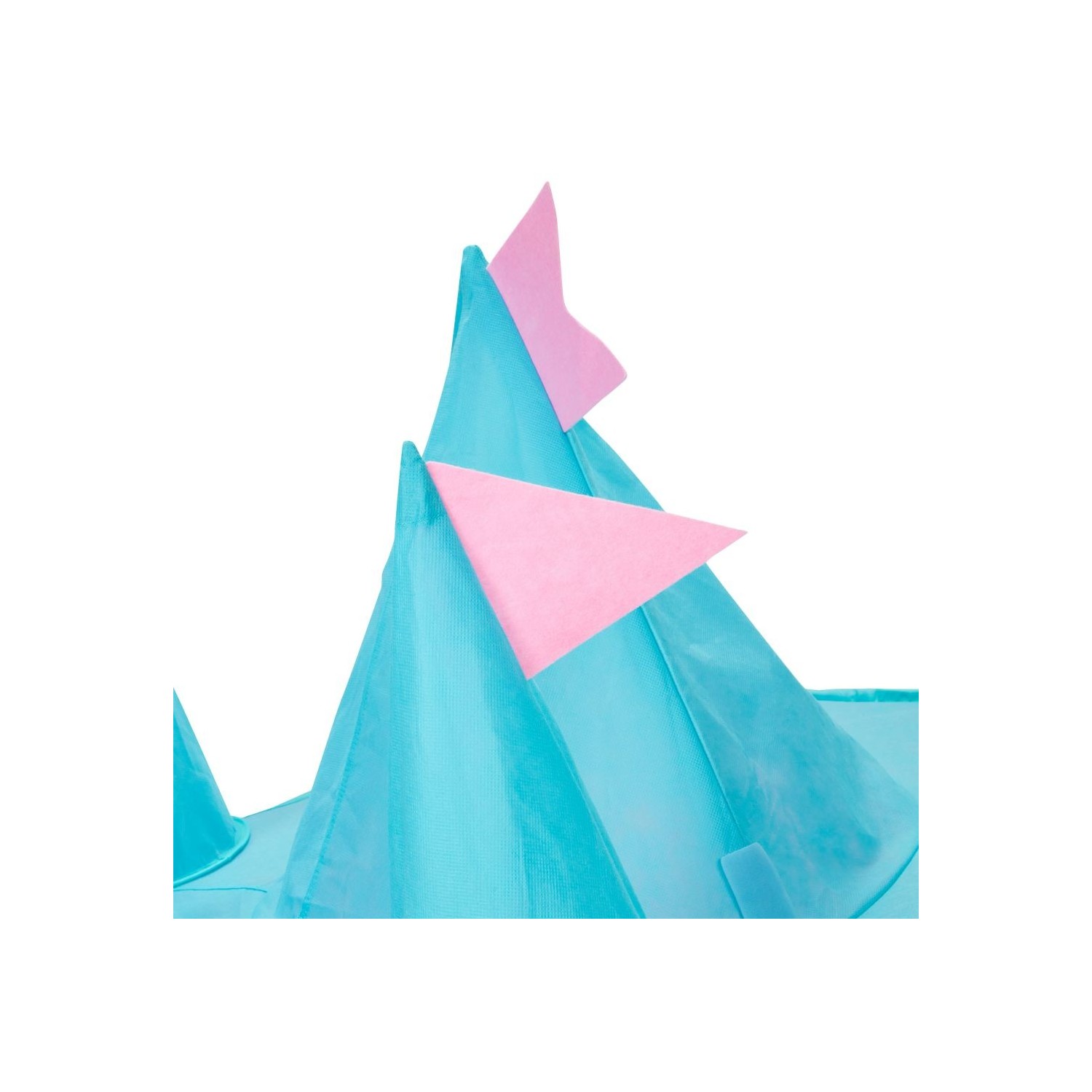 Ideal pentru joaca în interior sau în aer liber, acest cort pop-up are 3 turnulețe, ferestre și un pod rabatabil.