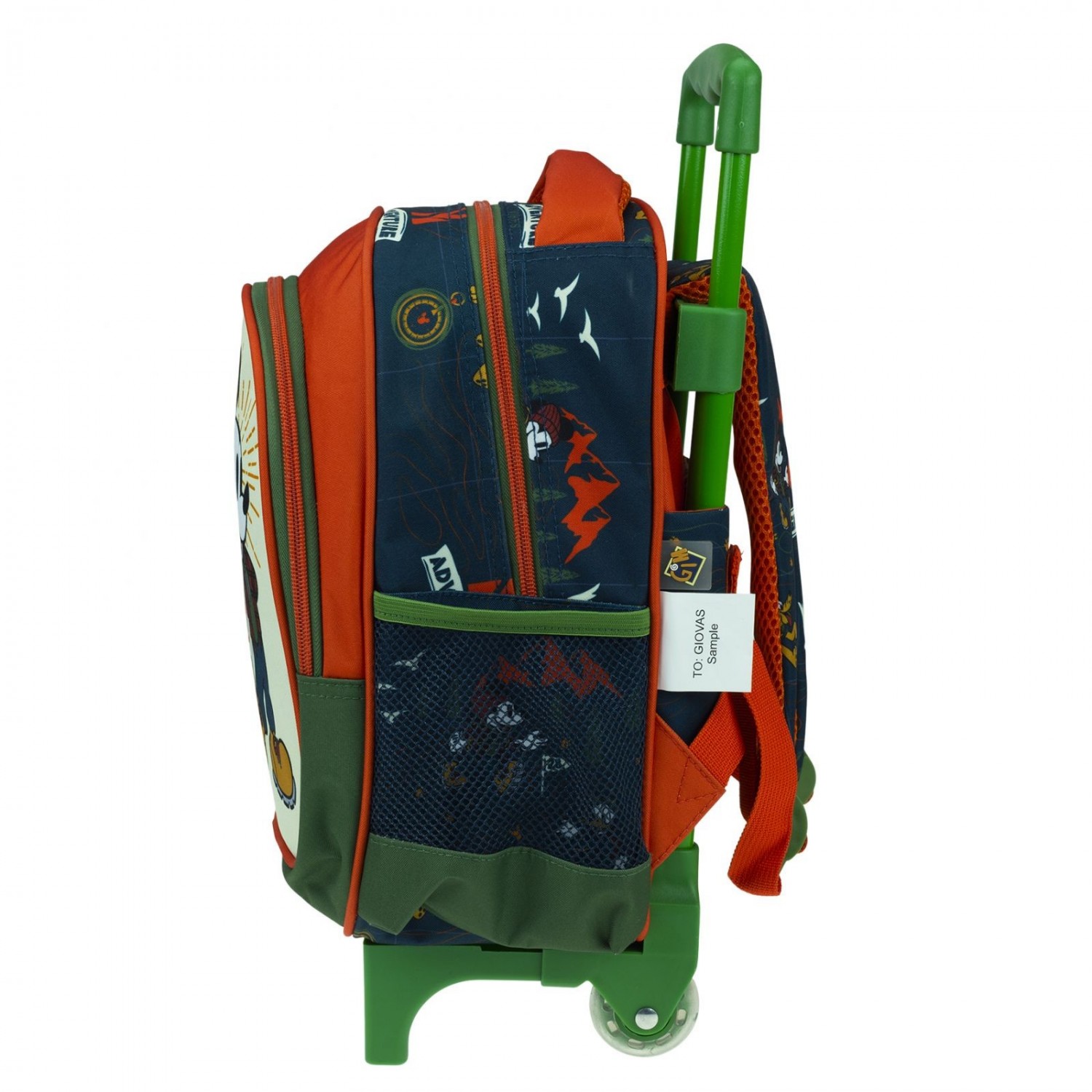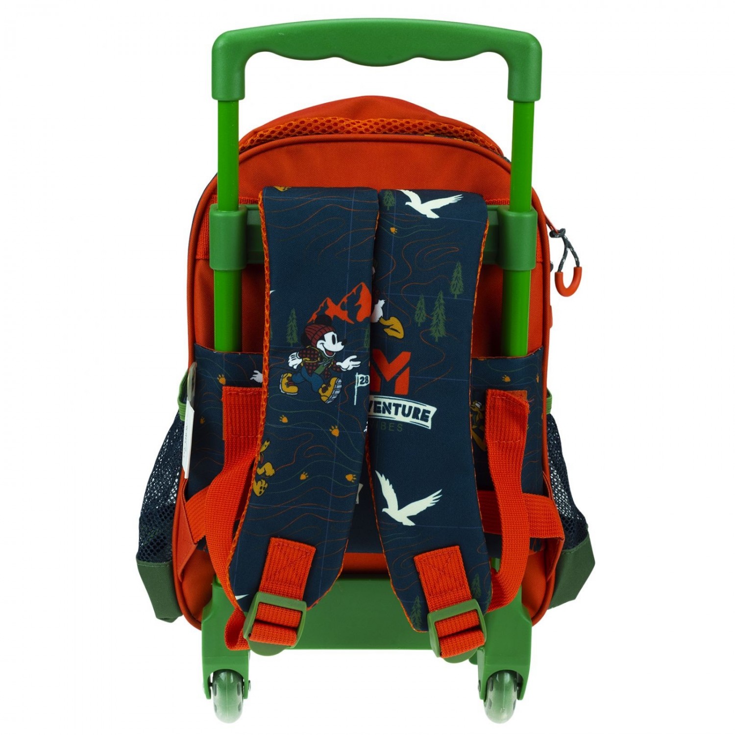 Ghiozdan Troller Mickey Mouse pentru gradinita, confectionat din poliester, cu 2 compartimente cu fermoar, buzunare laterale pentru sticla, maner, bretele ergonomice reglabile si bara extensibila.