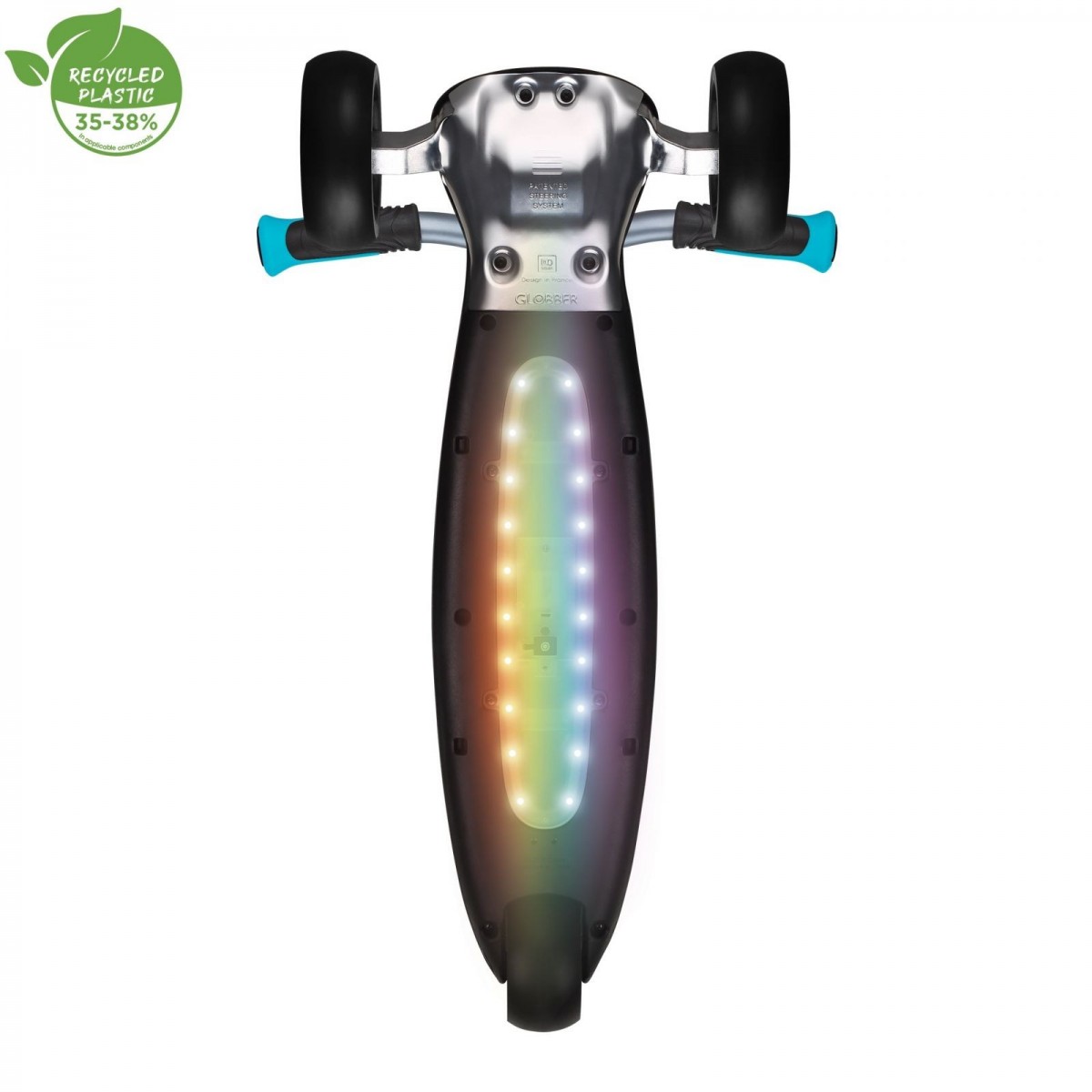 Luminile LED integrate în platformă, fără baterii, transformă fiecare plimbare într-un spectacol de culori fără grija schimbării bateriilor. ULTIMUM LIGHTS îmbină astfel siguranța, flexibilitatea și distracția la mers pentru utilizatori de la 6 ani până la vârsta adultă.