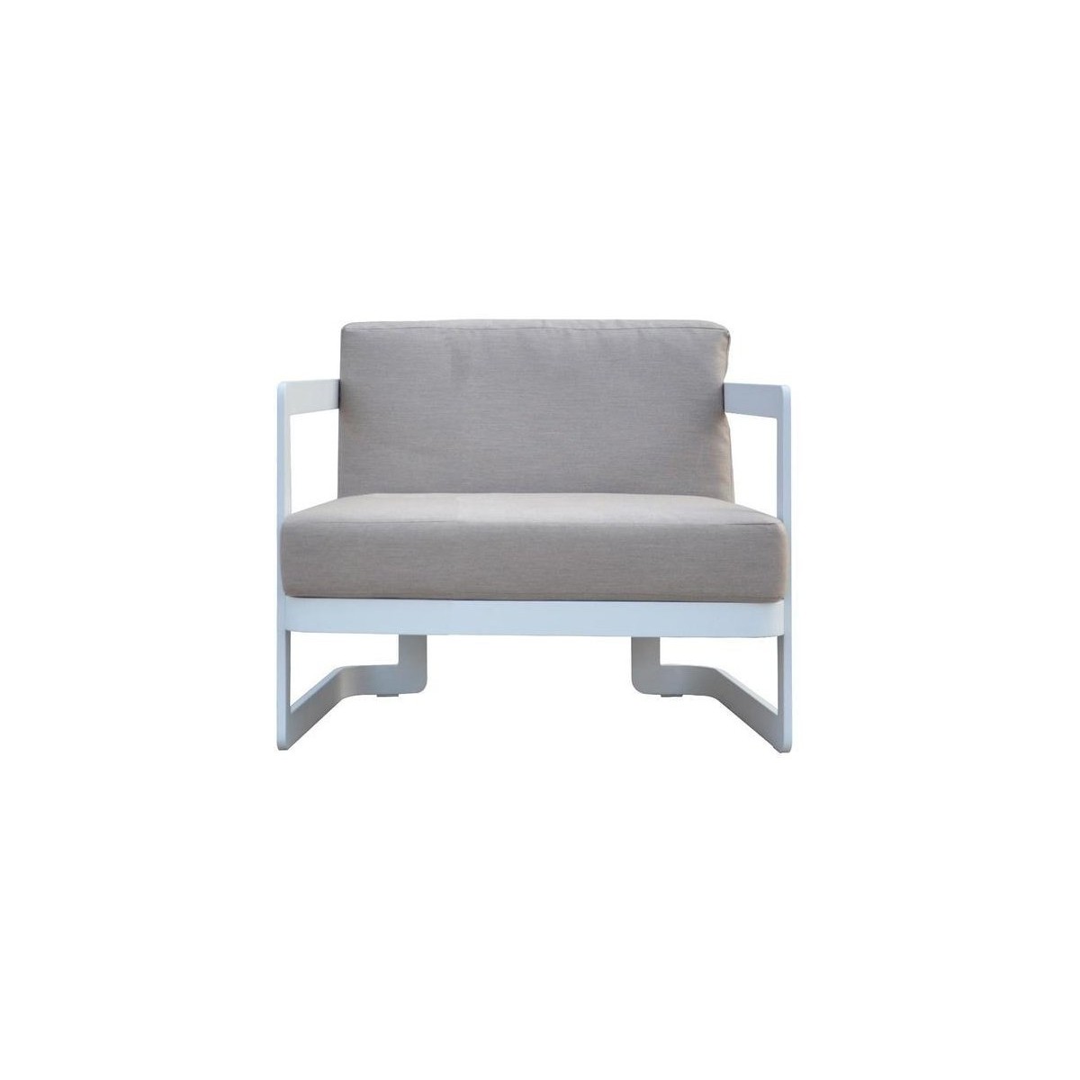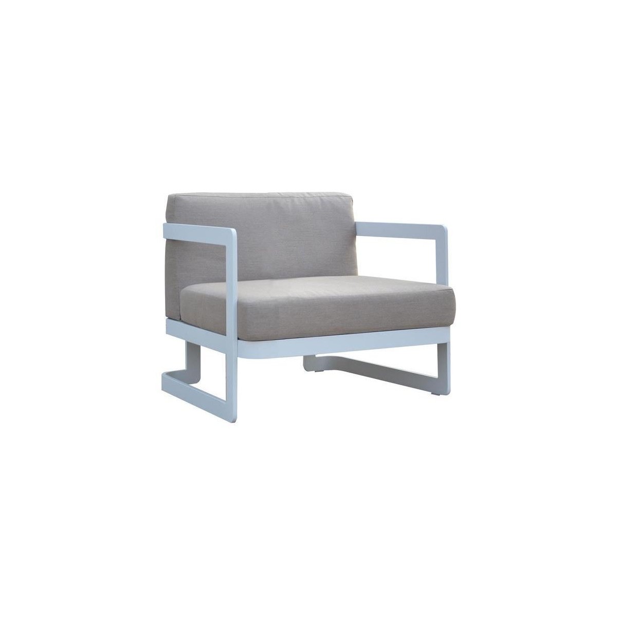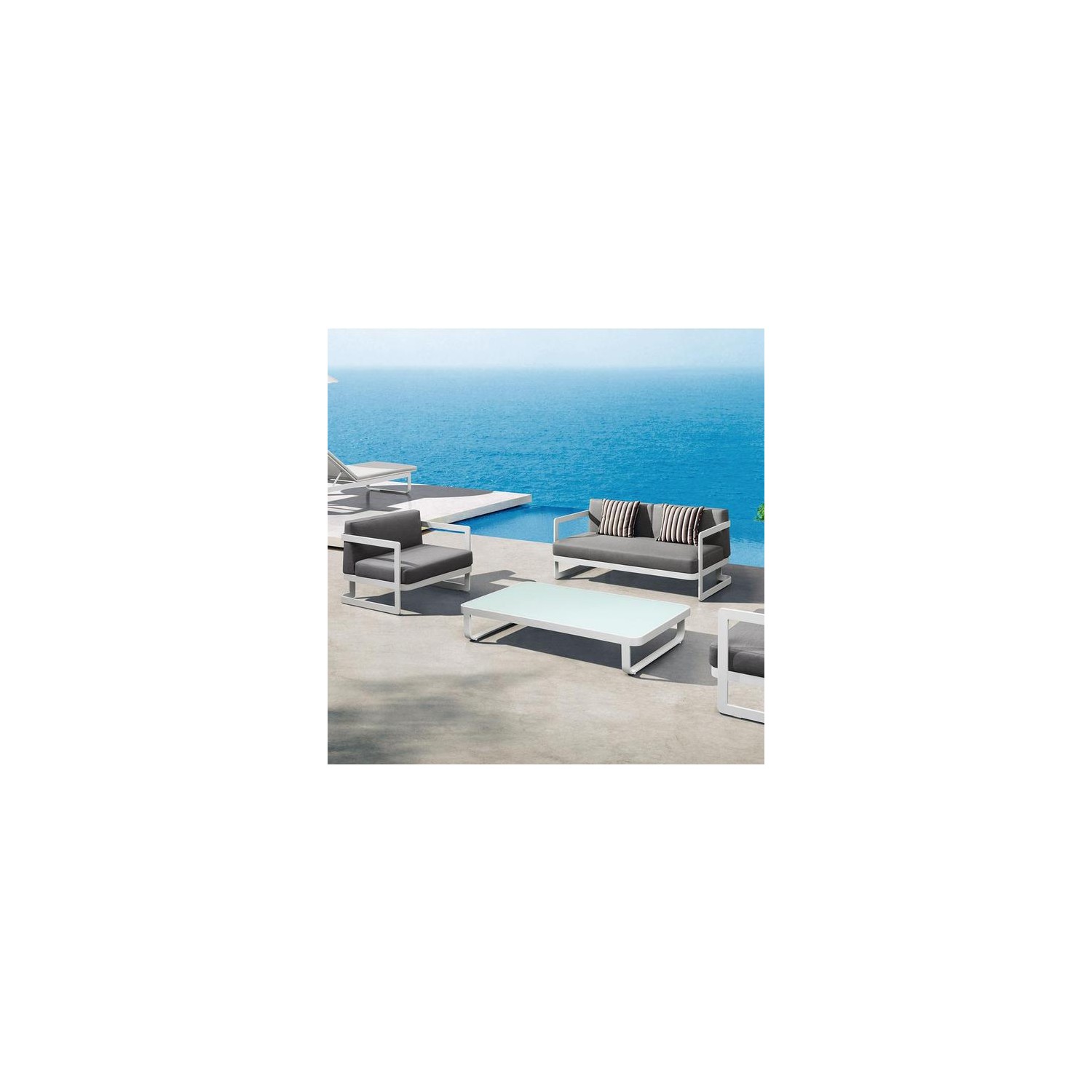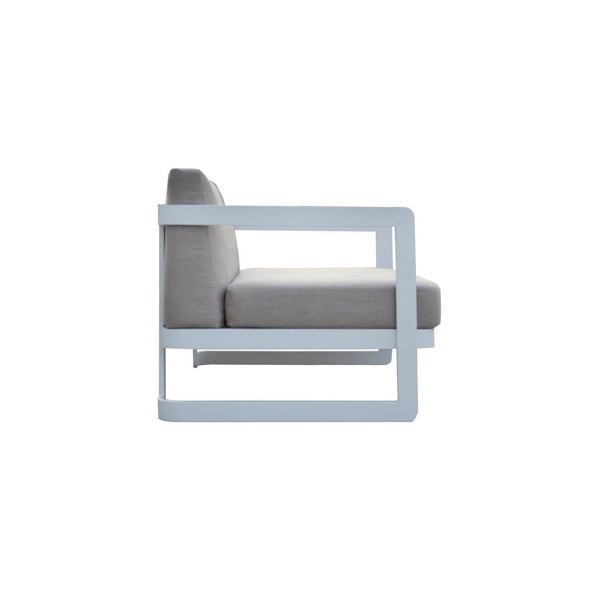 Este realizat pe o structura din aluminiu vopsit in camp electrostatic si completat de doua perne groase si confortabile.