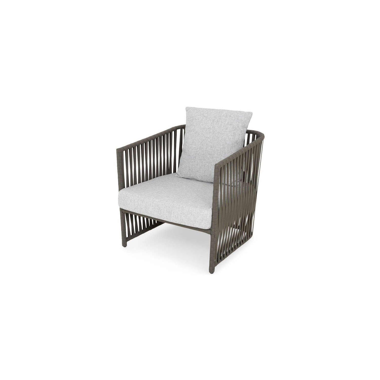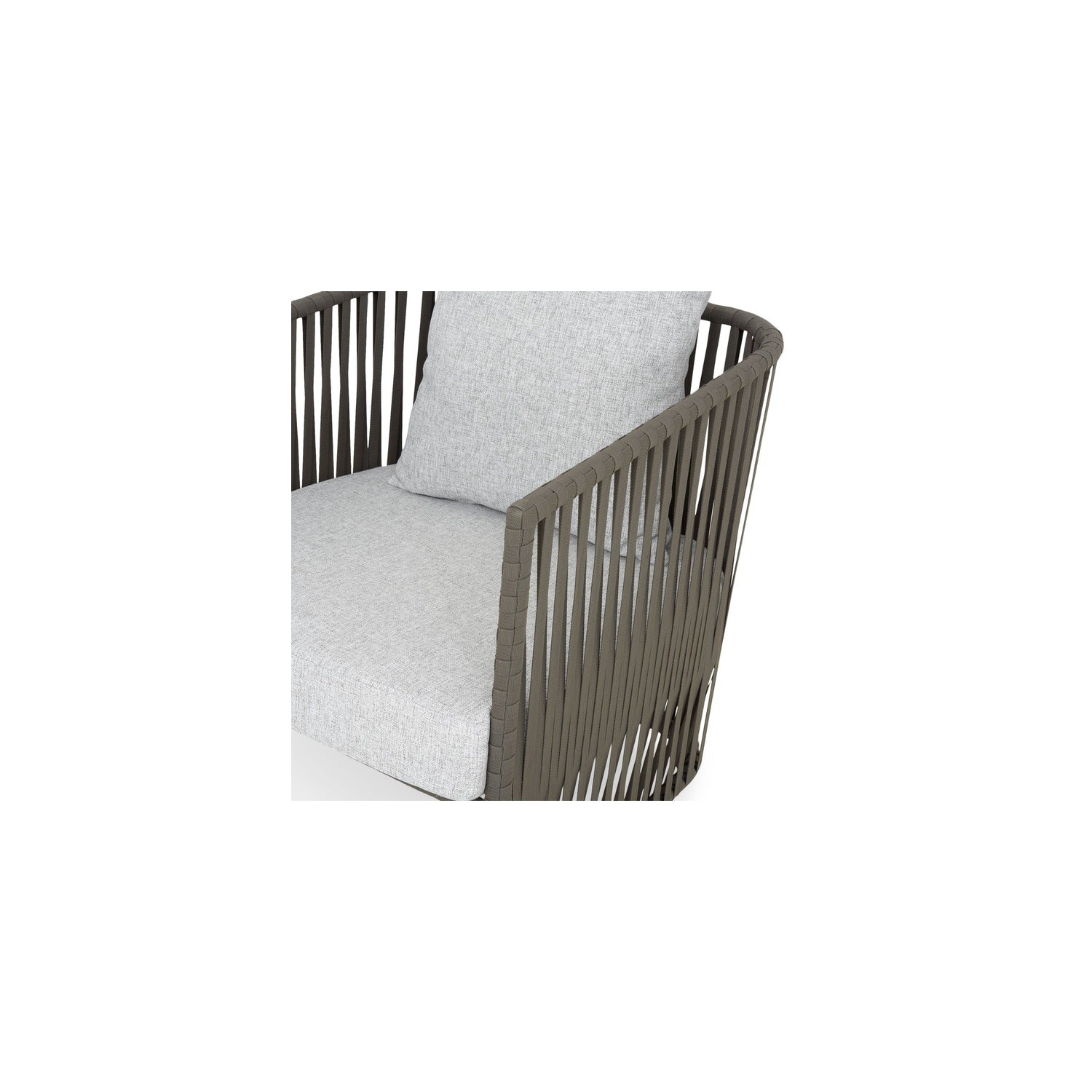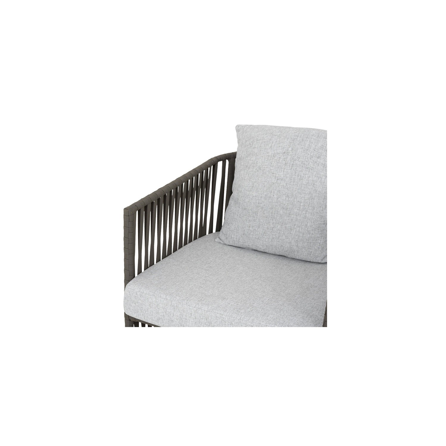 Realizat din structura de aluminiu vopsita in camp electrostatic si impletita cu chinga @Vyro din poliester tratat UV. Include perne din tesatura @Olefin cu protectie impotriva umezelii si a decolorarii. Husele pernelor sunt prevazute cu fermoar pentru a fi mai usor de indepartat si curatat.