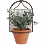 Suport din ceramica antichizata pentru ghivece, cu imprimeu Botanicae si rama din fonta. Diametrul interior al inelului este de 10,5cm.