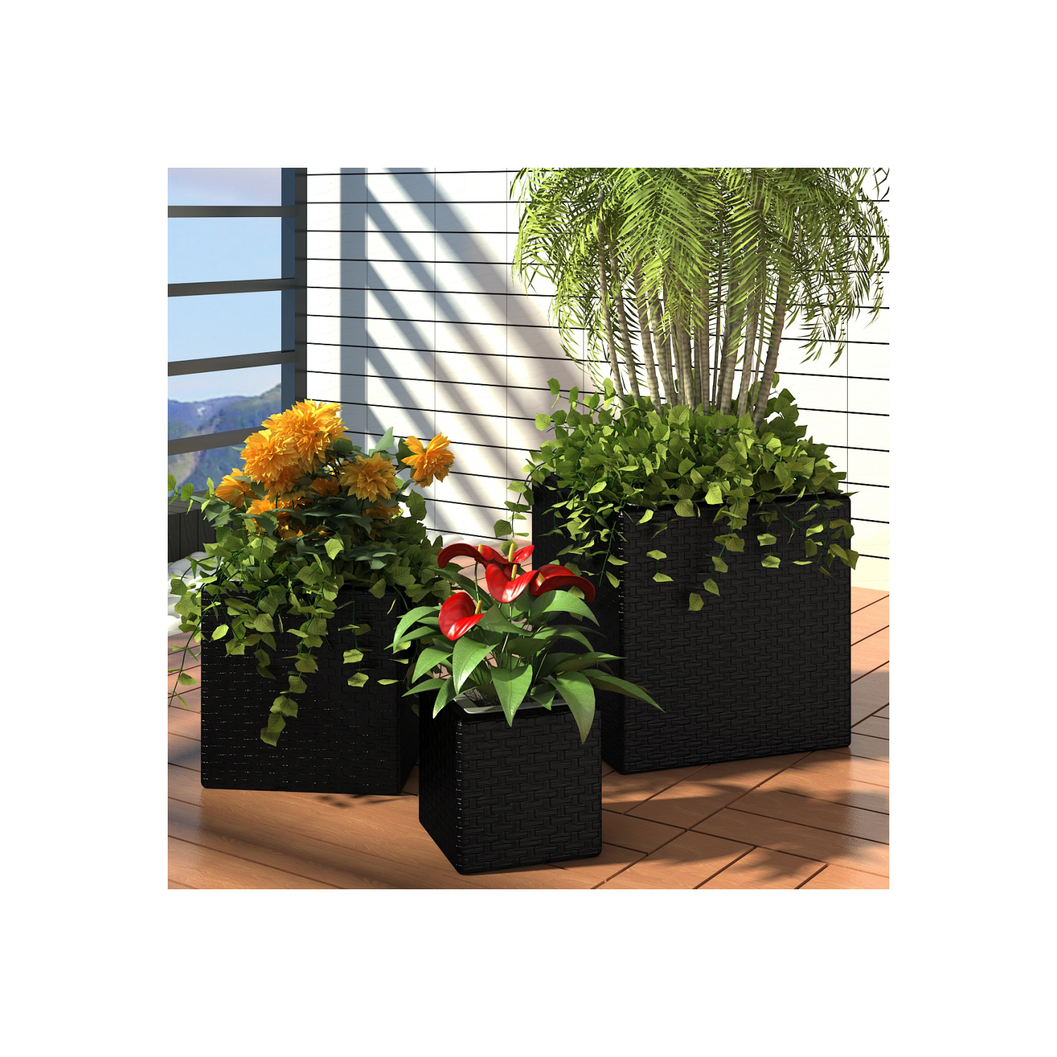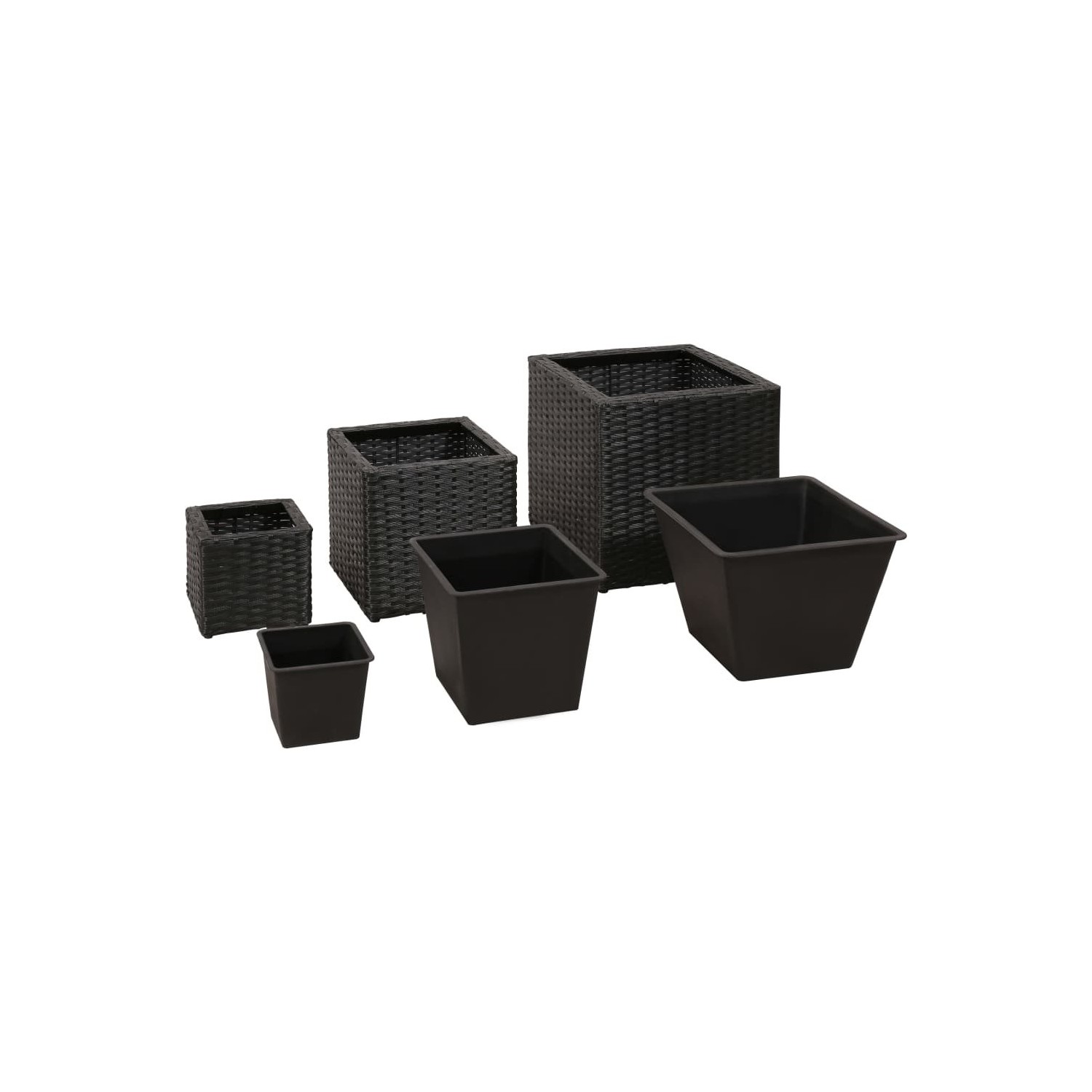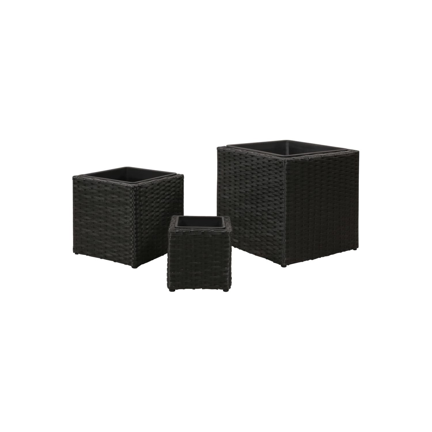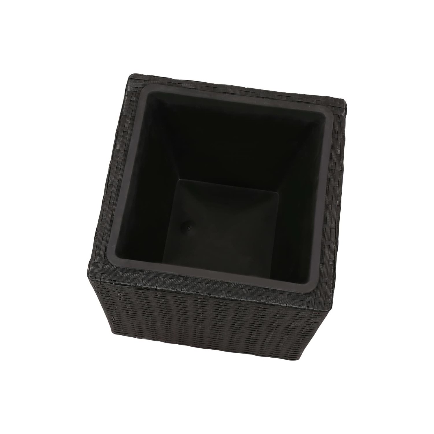 Ghiveci patrat din ratan pentru gradina, 3 buc, Negru