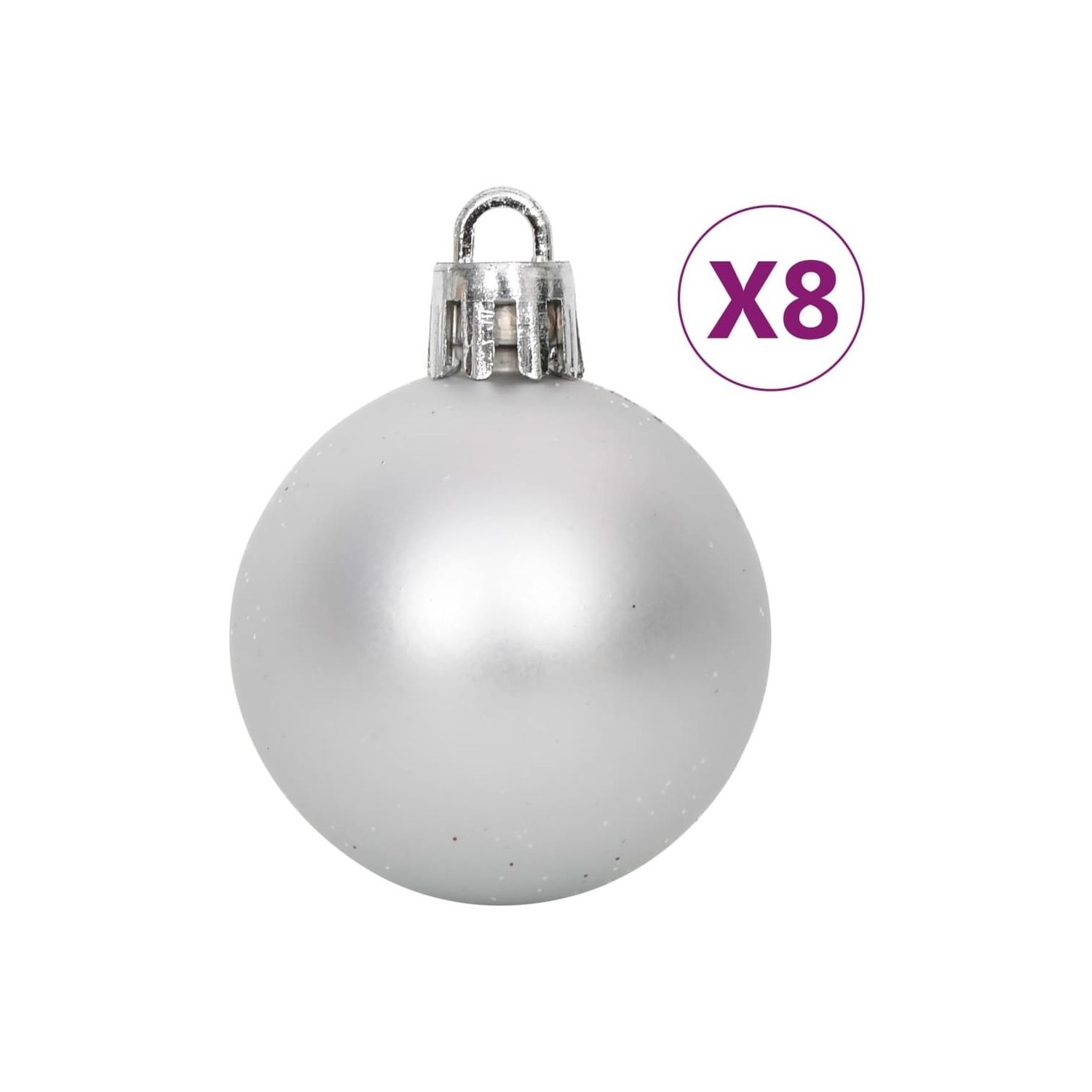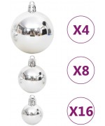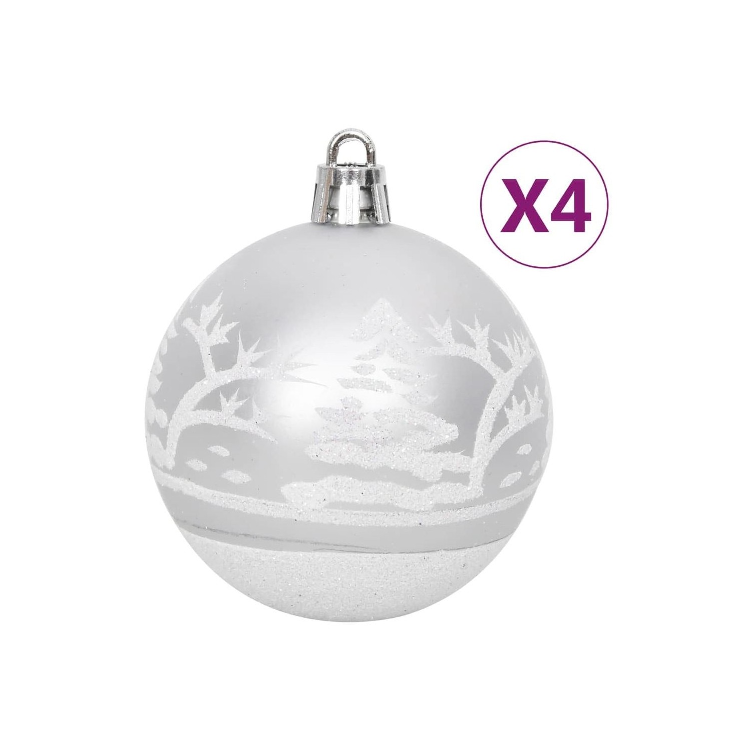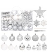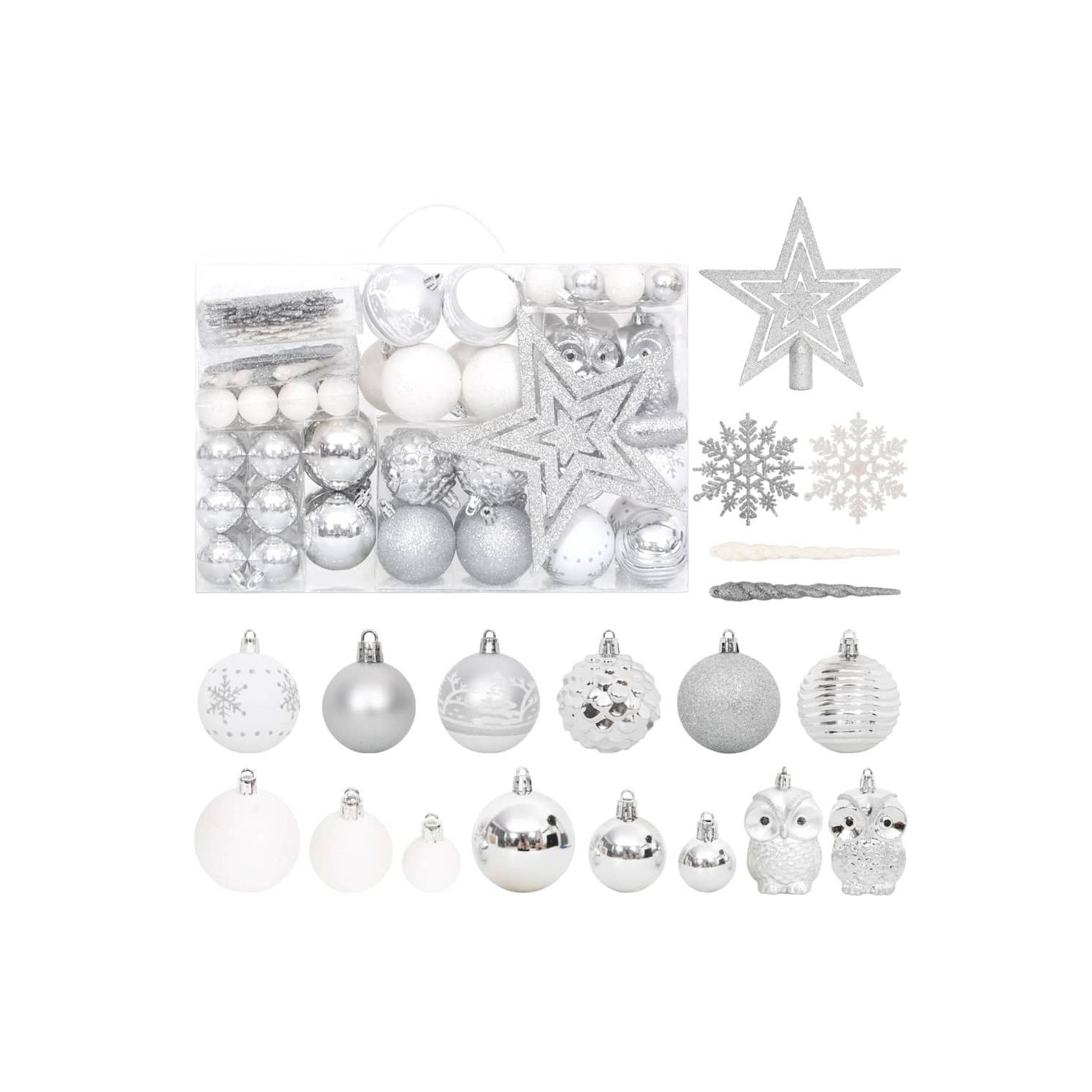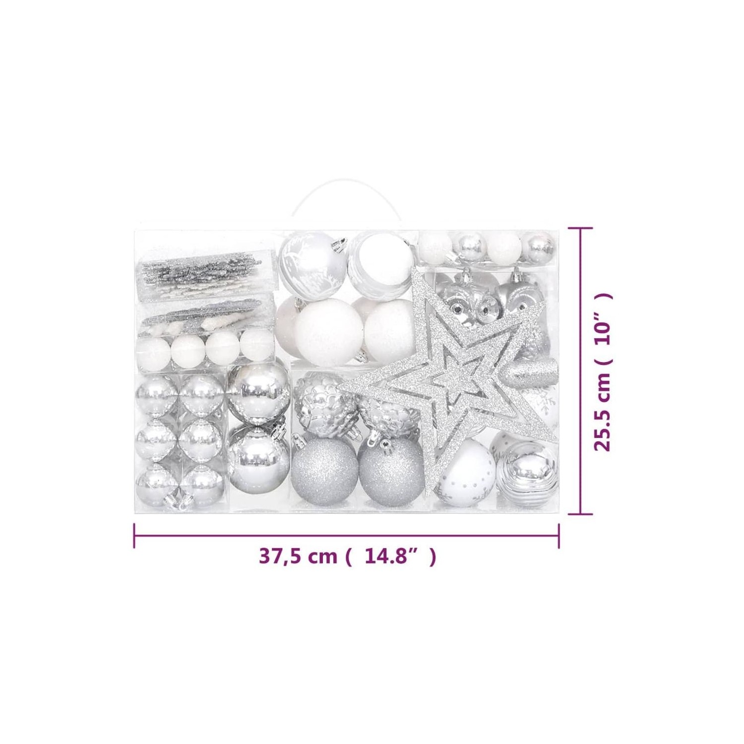 Set globuri de Craciun, 108 piese, argintiu si alb