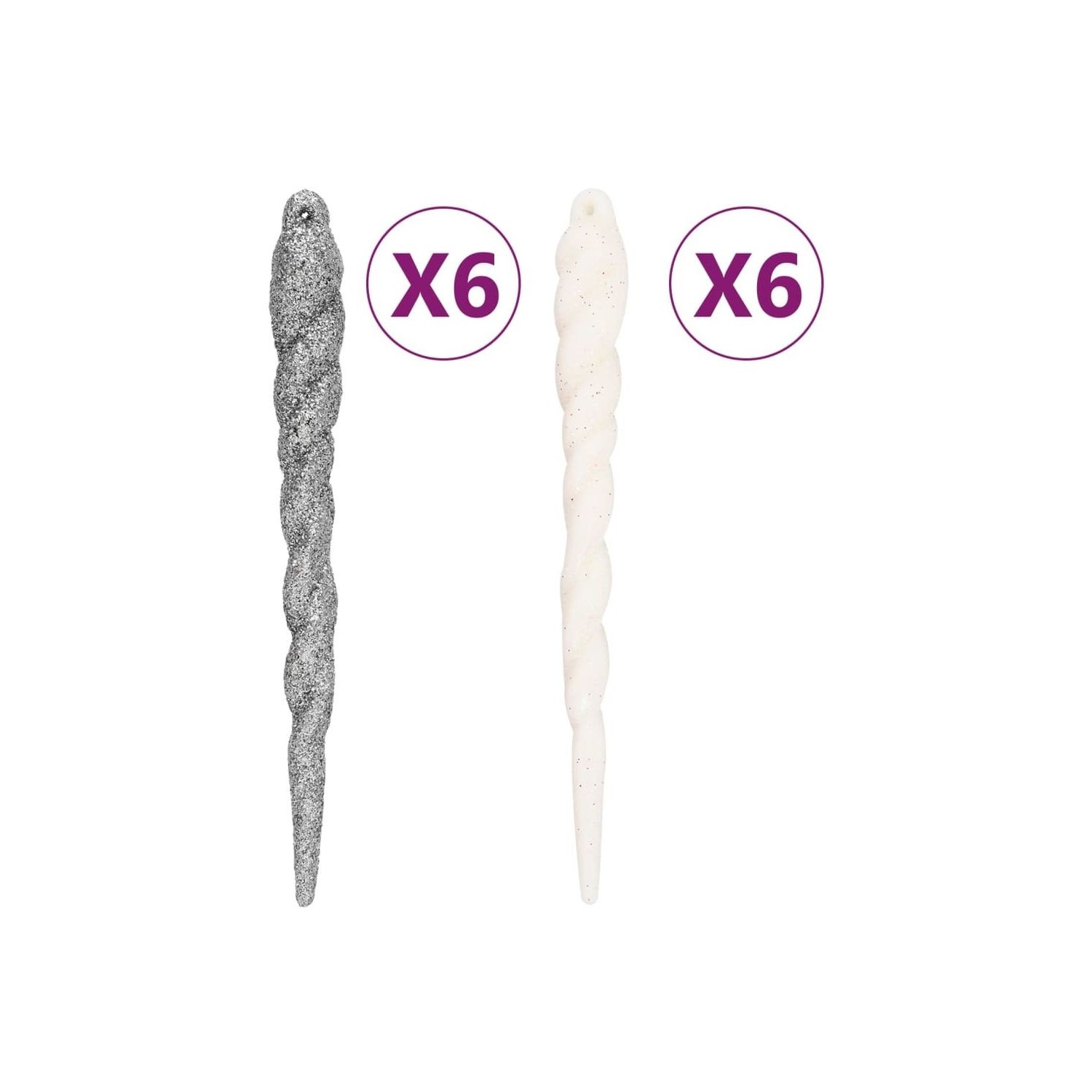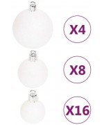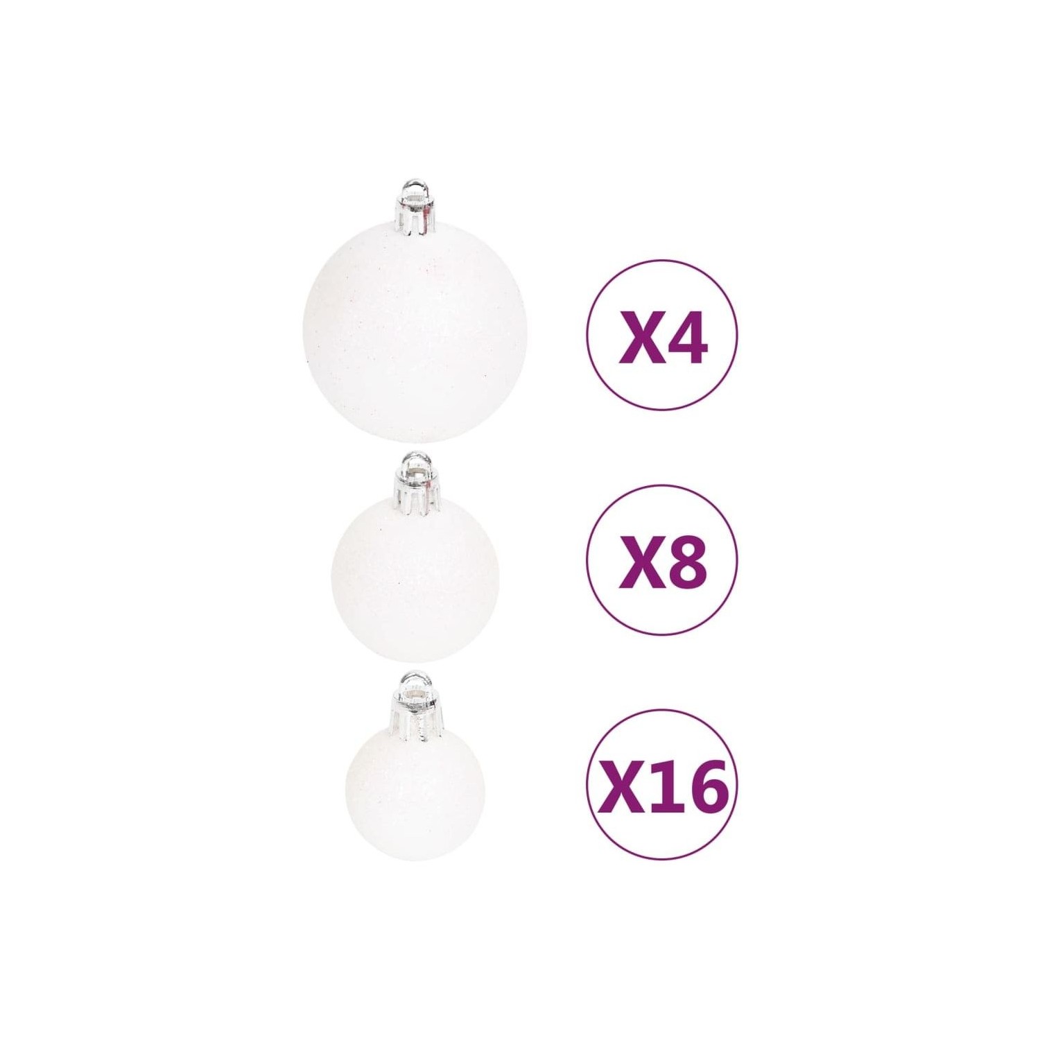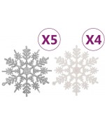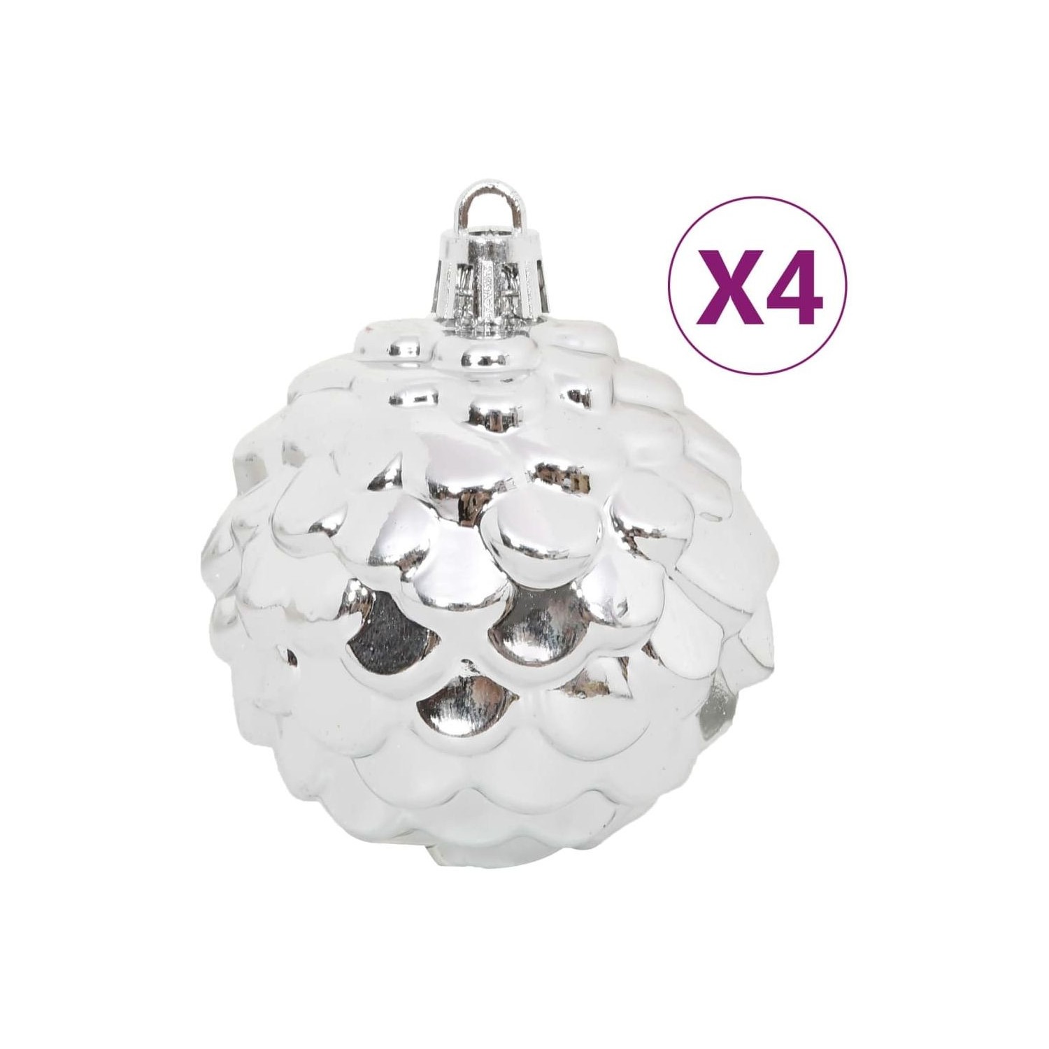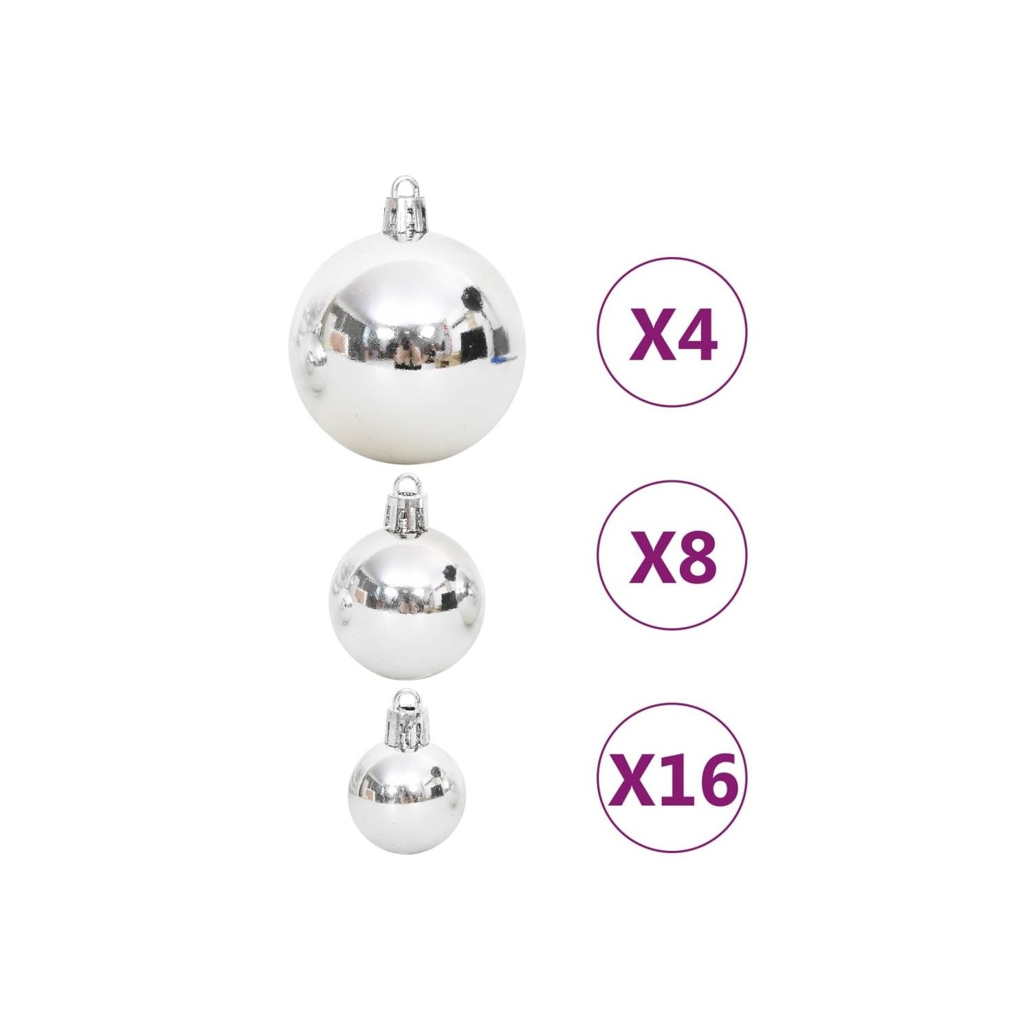 Set globuri de Craciun, 108 piese, argintiu si alb