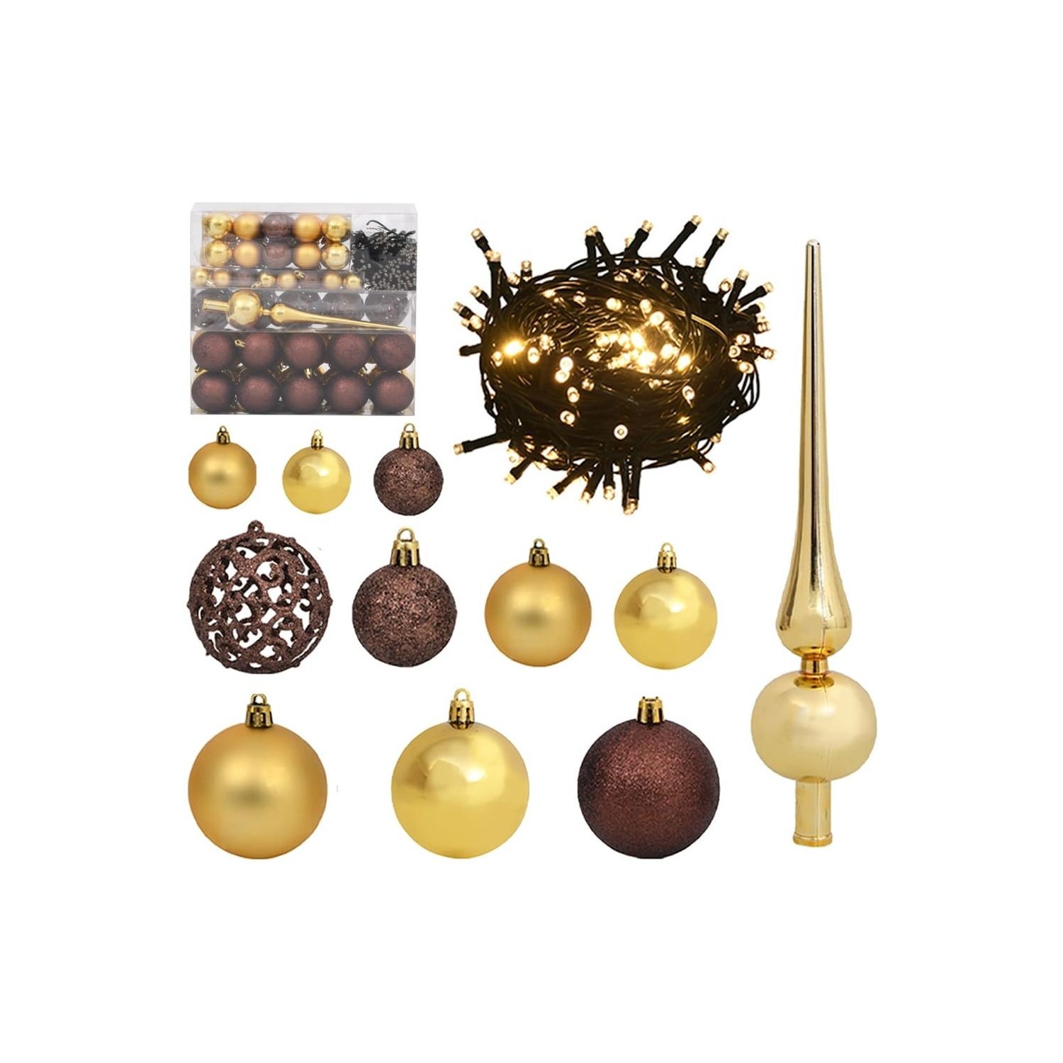 Set globuri Craciun cu varf & 300 LED-uri 120 piese auriu&bronz