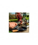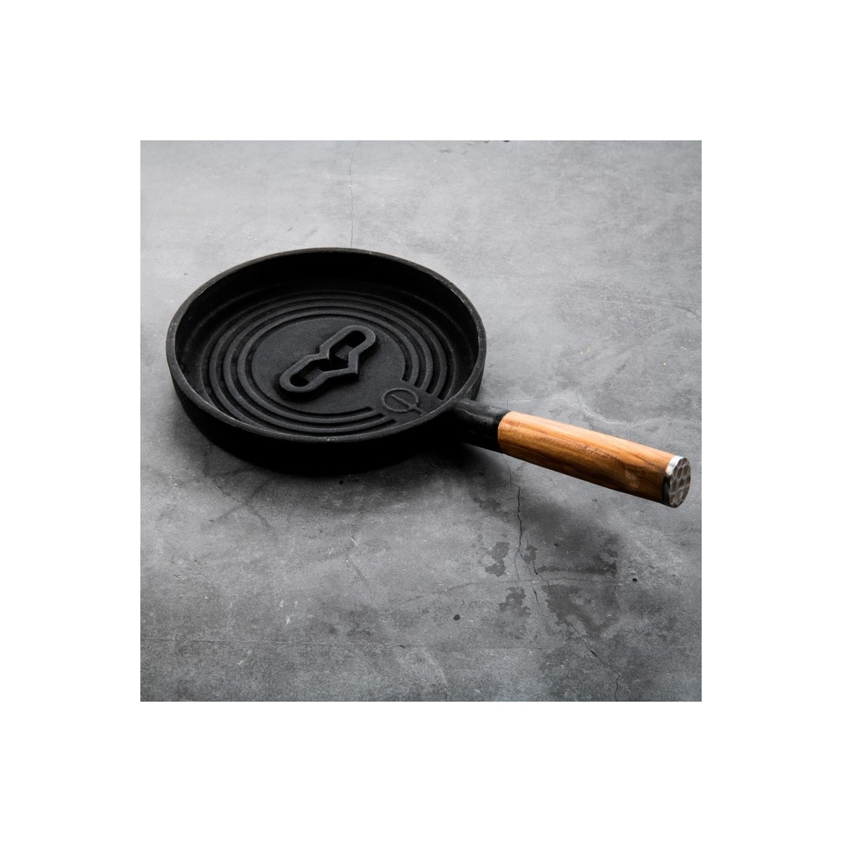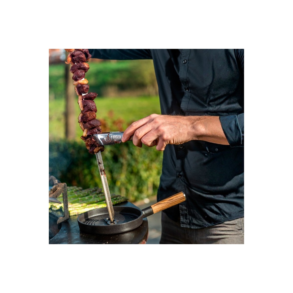 Tigaia de servire este fabricata din fonta si are un maner din lemn de maslin. Se potriveste perfect cu frigaruile si clestele din seria Churrasco.