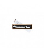 Lama extrem de lunga a cutitului de macelarie Forged Sebra va permite sa pregatiti si sa portionati cu usurinta bucati mari de carne. O caracteristica distinctiva este curba ascendenta de la varful lamei. Cu acest cutit de macelar puteti taia bucati de carne uniforme cu o singura miscare lina. Cutitele Forged Sebra sunt fabricate din otel japonez 440C cu o duritate Rockwell 58. Toate cutitele Forged sunt fabricate manual, ceea ce face ca fiecare piesa sa fie unica. Cutitele au o grosime a lamei de 2 mm si un unghi de taiere de 18 grade. Se livreaza in cutie eleganta din lemn.