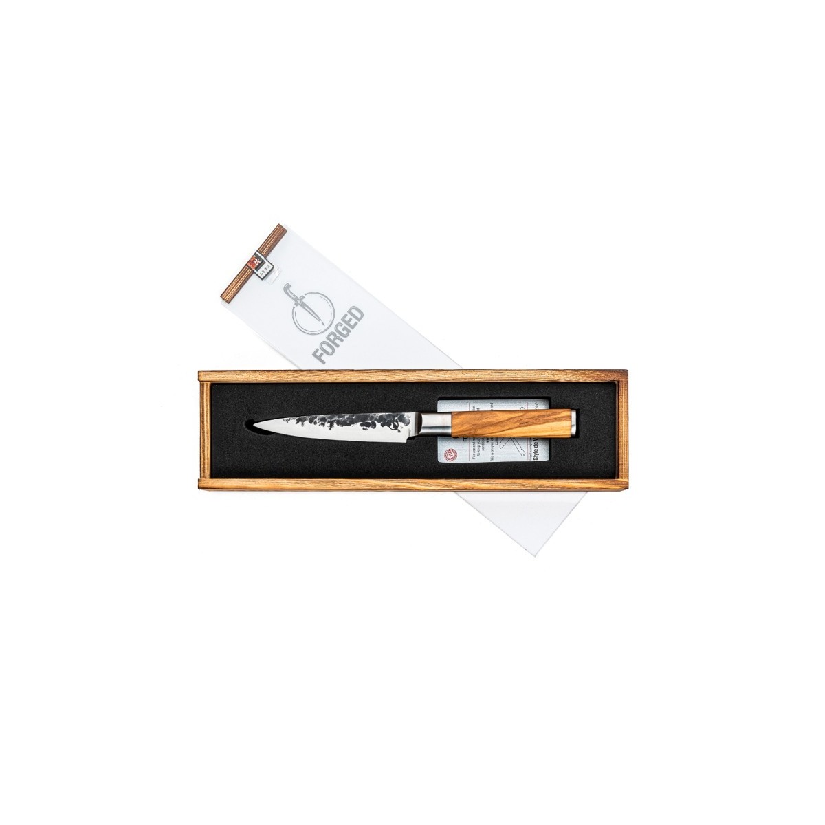 Cutitul pentru dezosat Forged Olive este special conceput pentru dezosarea carnii si a pasarilor. Cutitul are o lama lunga si subtire, care va permite sa taiati fara efort de-a lungul osului. Cutitele Forged Olive sunt fabricate din otel japonez 440C cu o duritate de 58 Rockwell.