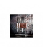 Acest bloc magnetic elegant pentru cutite va permite sa va aranjati cutitele intr-un mod estetic si este indispensabil pentru cutitele cu lame fin lucrate. Blocul poate fi utilizat pe ambele parti si este fabricat din lemn de nuc. Se sprijina pe o baza din piatra naturala. Blocul magnetic pentru cutite are dimensiunile de 27,5 x 25 x 12 cm.